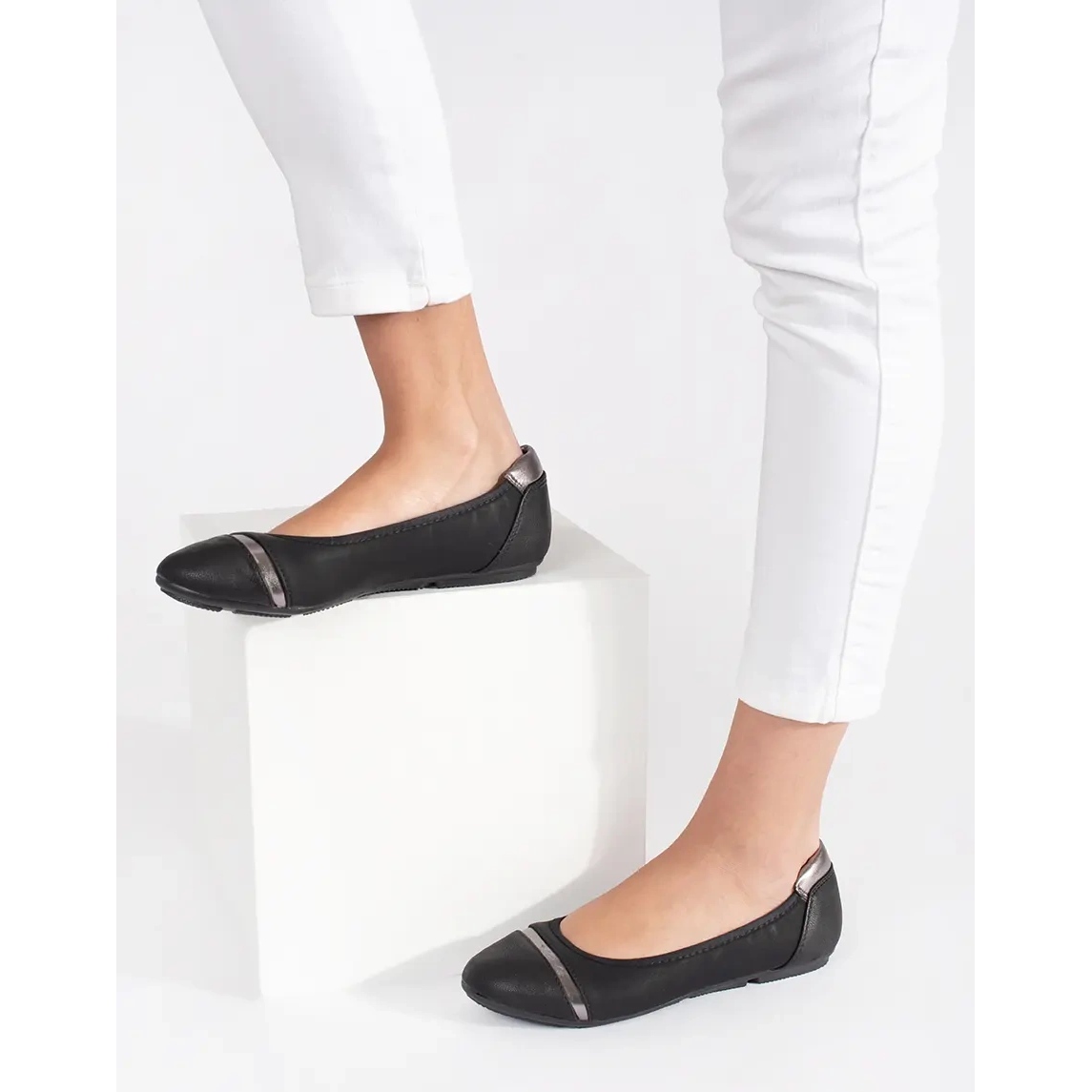 Découvrez l'élégance et le confort à tout moment avec des ballerines plates noires. Ces chaussures élégantes pour femmes, fabriquées en simili cuir de haute qualité, allient parfaitement apparence tendance et confort de port.