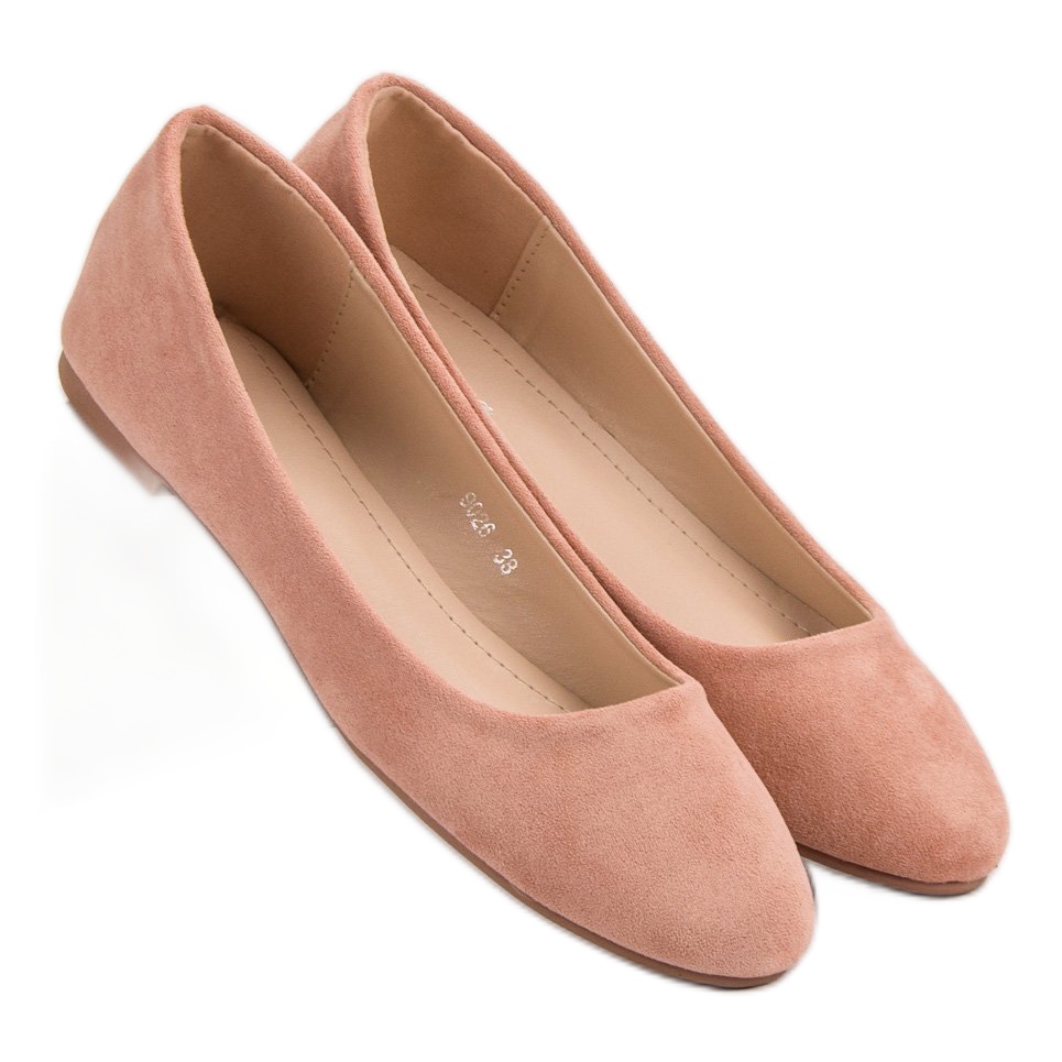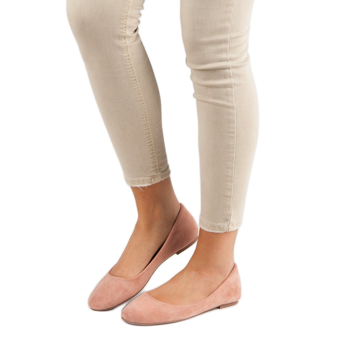 Confectionnées en daim écologique dans une délicate nuance de rose poudré, ces ballerines attirent l'attention par leur simplicité et leur élégance. Une semelle plate et un talon souple intégré offrent un confort de port maximal, afin que vous puissiez passer de longues heures debout sans ressentir aucune gêne. Le bout rond ajoute de la subtilité et la semelle synthétique lisse est parfaite pour une variété de surfaces.