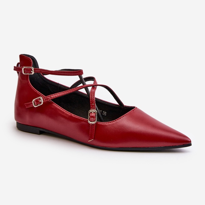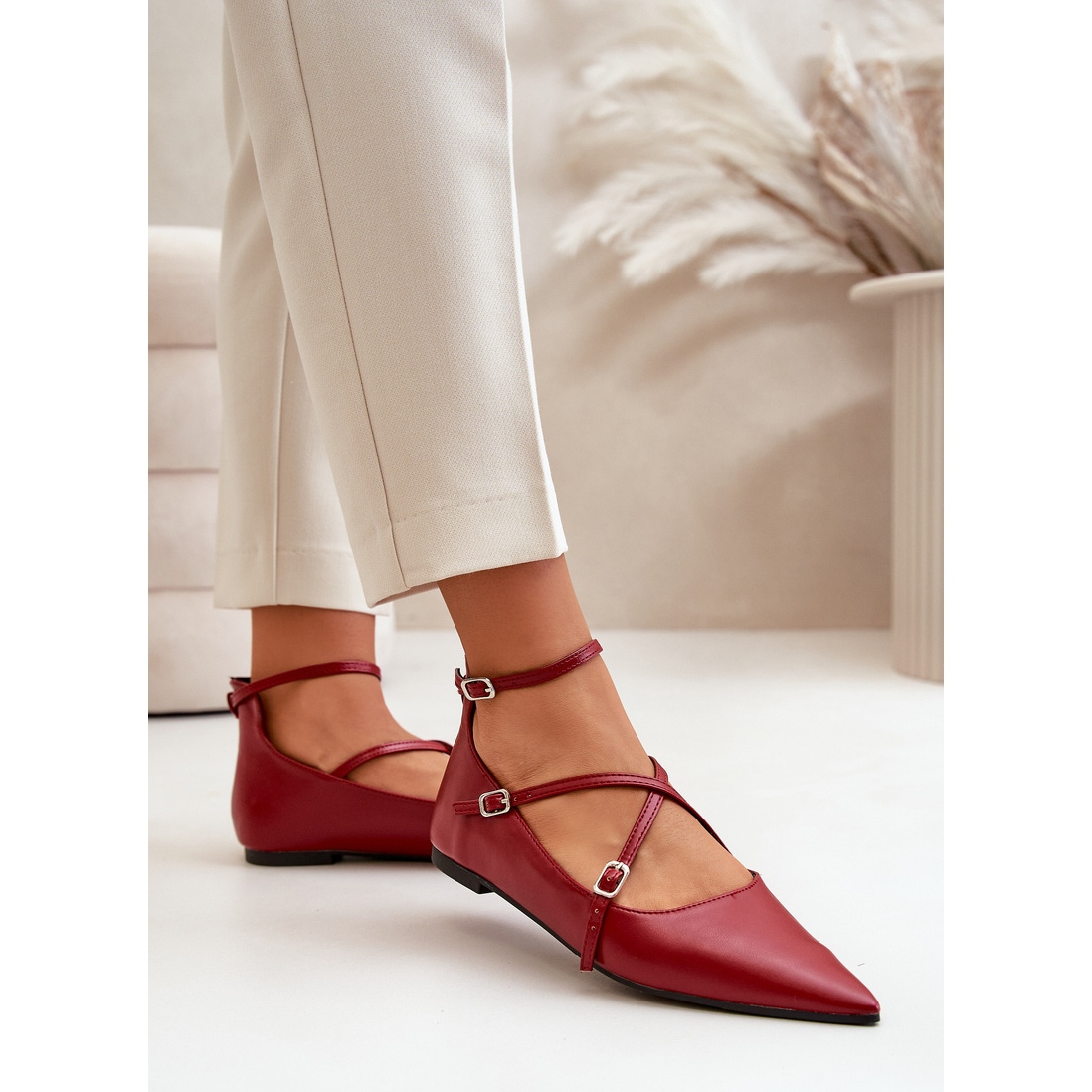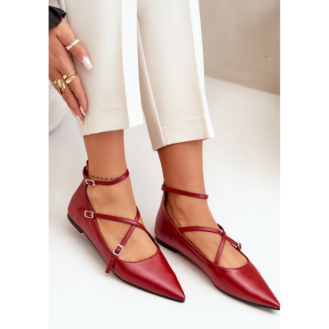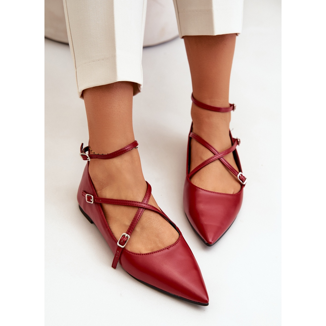 Détails: Ballerines pour femmes à bouts pointus et bretelles entrelacées, bordeaux Violra rouge