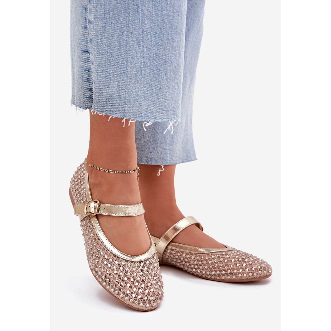 Les ballerines pour femmes décorées avec une ceinture et une boucle en couleur dorée sont une proposition idéale pour les femmes qui apprécient l'élégance et le confort. Leur design subtil avec un nez arrondi leur donne une délicatesse, et en plus une ceinture avec une boucle au milieu du pied fournit non seulement un ajustement parfait, mais devient également un accent décoratif efficace.
