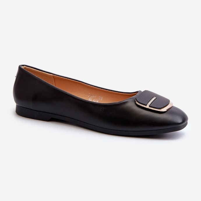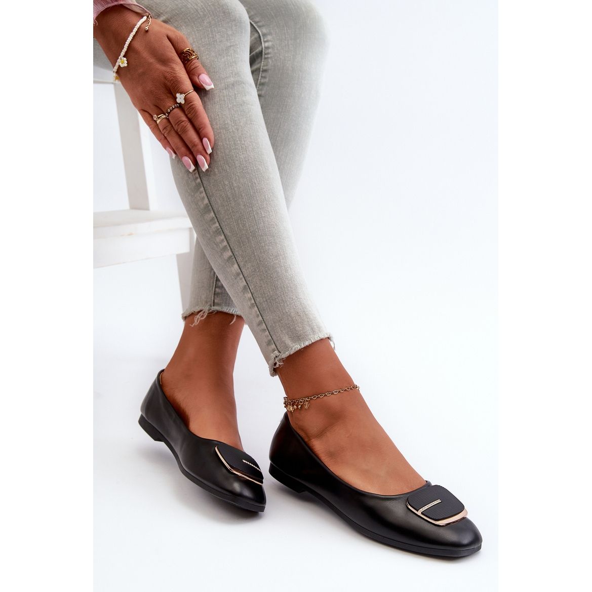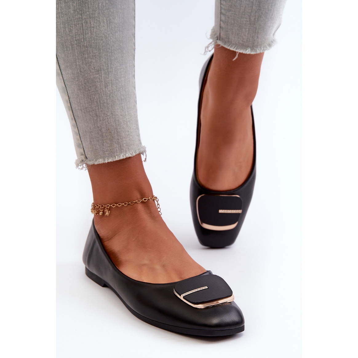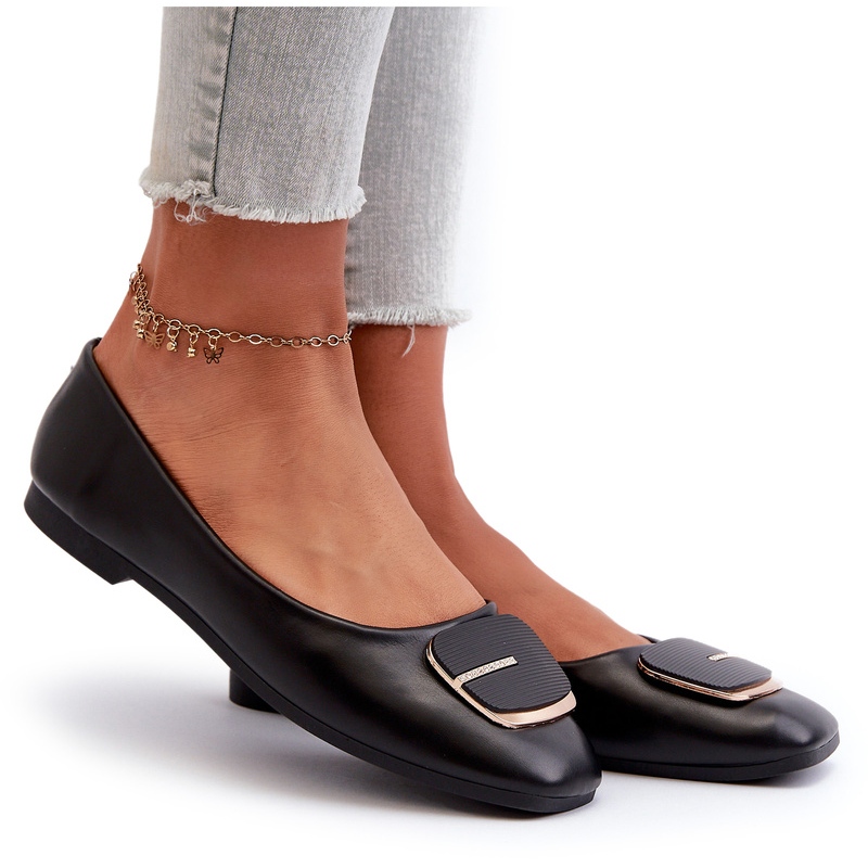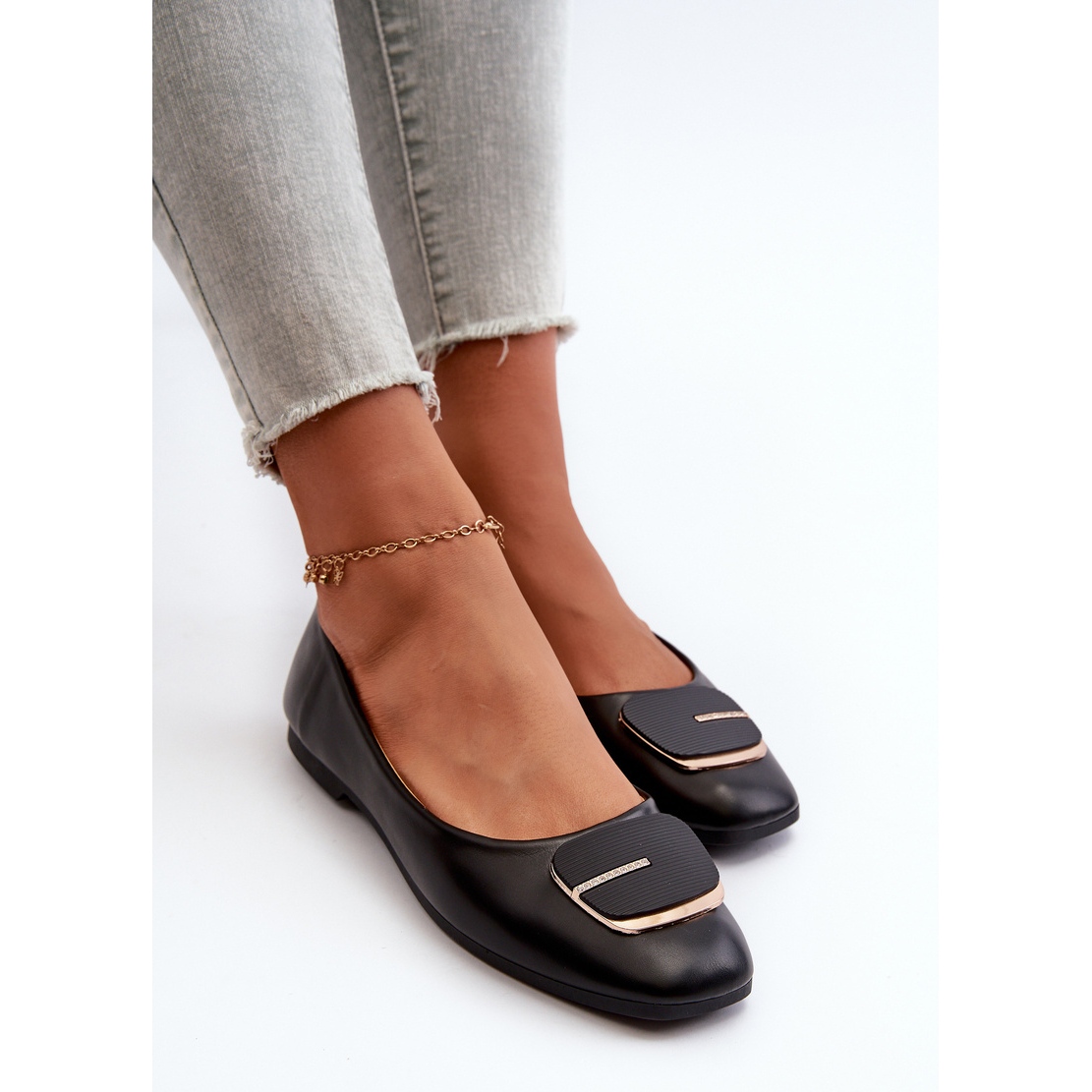 Détails: Ballerines Pour Femmes En Cuir Écologique Avec Décoration Noir Edoslli le noir