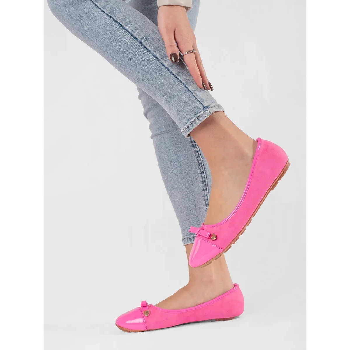 Détails: Ballerines pour femmes plats roses avec un arc et un orteil verni