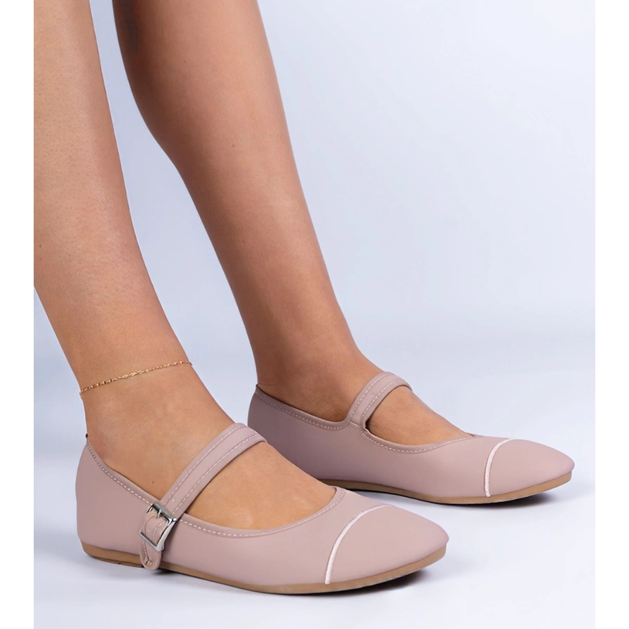 Détails: Ballerines roses avec une finition mate fixée avec une boucle