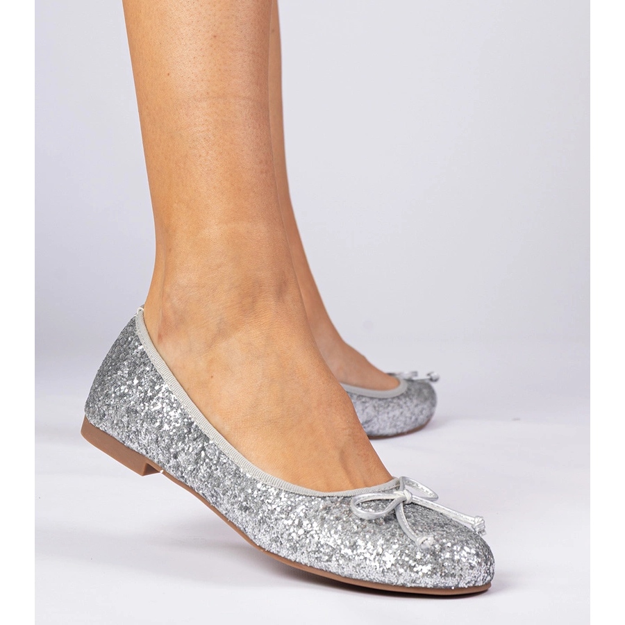 Détails: Ballerines scintillantes pour femmes argentées avec un arc