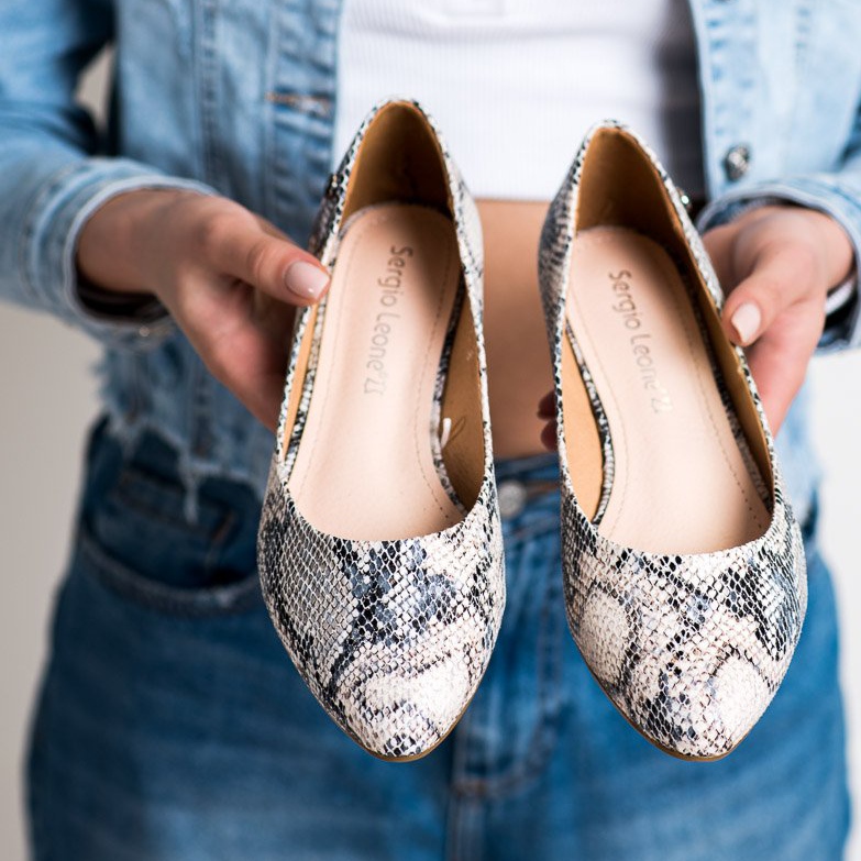 Découvrez un style et un confort uniques avec les ballerines Snake Print de la célèbre marque Sergio Leone. Ces chaussures extrêmement originales, fabriquées en cuir écologique avec un motif serpent accrocheur, attireront certainement l'attention et ajouteront du caractère à n'importe quel style.