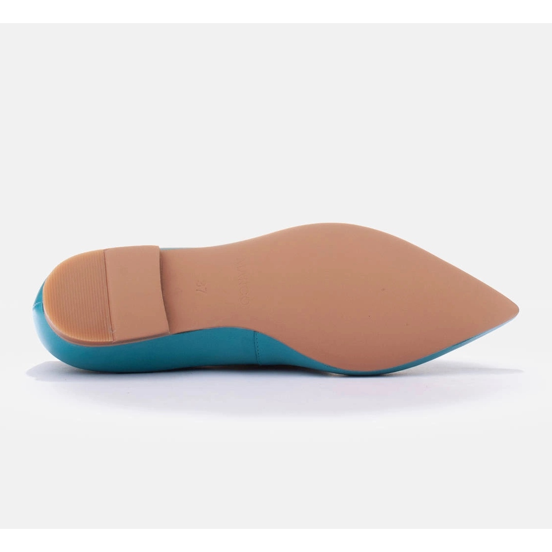 Le produit décrit ici est une ballerine bleue de Marco Shoes. Il s'agit d'un modèle classique à encolure accentuée, réalisé en cuir de chèvre pleine fleur de haute qualité. Ces ballerines ont un bout légèrement allongé qui affine le pied. Le cuir naturel à partir duquel elles sont fabriquées est utilisé à la fois sur le dessus et à l'intérieur de la chaussure, ce qui assure un confort d'utilisation.