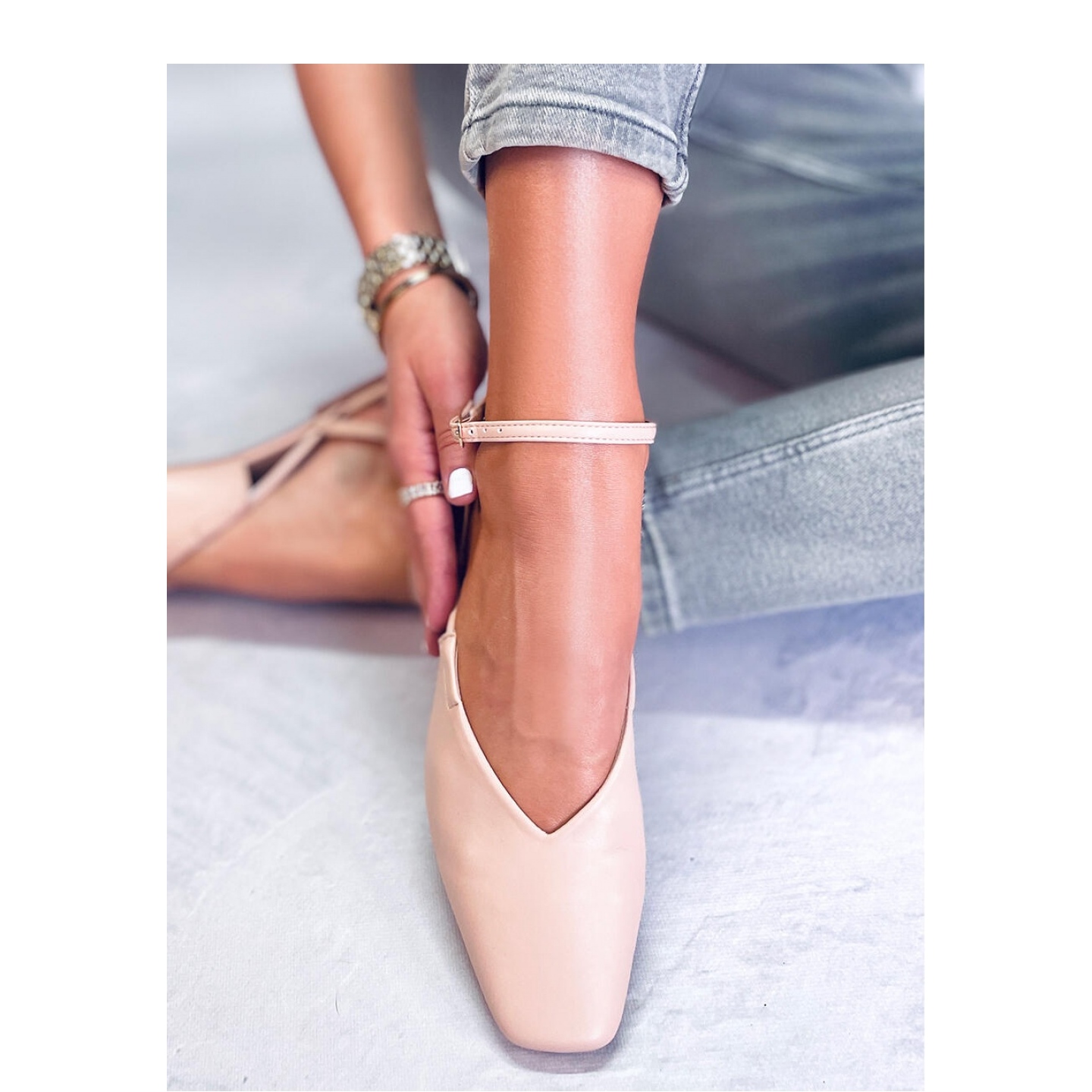 Découvrez l'élégance et le réconfort grâce aux ballerines avec un talon découvert en nuance beige nue. Ces chaussures de femmes, créées pour des stylisations modernes, combinent une coupe à la mode et des fonctionnalités. Grâce aux outils carrés et à la fixation de la cheville, les ballerines sont non seulement belles, mais tiennent également le pied parfaitement, ce qui assure un confort de port maximal.