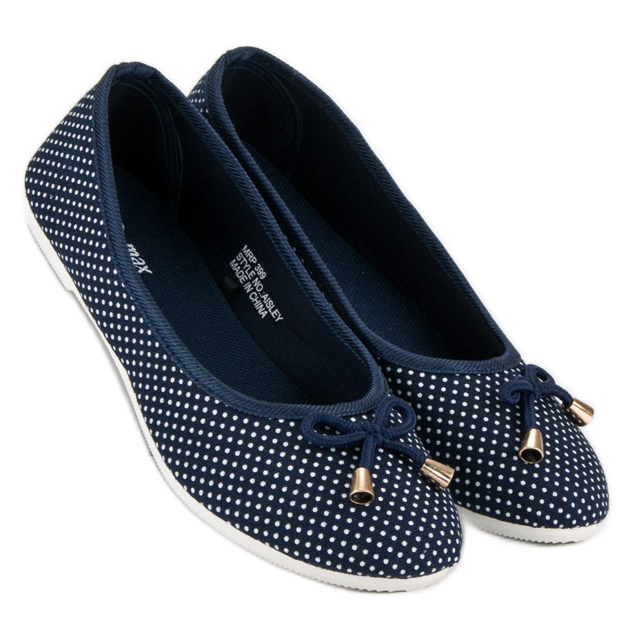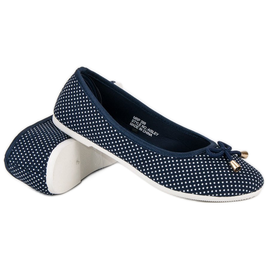 Découvrez l'élégance et le confort à la fois grâce aux ballerines en tissu à pois, qui seront le complément parfait à n'importe quel style. Ces charmantes chaussures blanches et bleu marine, à petits pois, séduisent non seulement par leur design, mais aussi par leur confort de port. Avec un délicat nœud bleu marine sur le devant, ces ballerines ajouteront de la subtilité à toutes les tenues, aussi bien au quotidien que plus élégantes.
