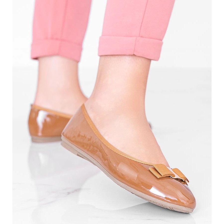 Les ballerines Yoko classiques et féminines dans une belle teinte de chameau sont un excellent choix tous les jours et pour le bureau. Fabriqué en cuir écologique verni, décoré d'un arc pressé subtil sur une boucle dorée, soulignez le style de chaque stylisation. L'insert doux offre un réconfort tout au long de la journée, et le talon bas (1 cm) et le caoutchouc beige garantissent la stabilité et la légèreté de l'étape. Le modèle a un nez rond et est inséré - pratique et élégant.