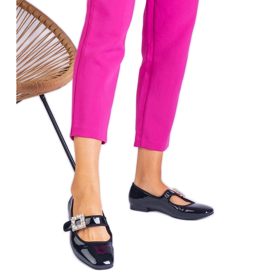 Ballerines vernites noires décorées d'une boucle