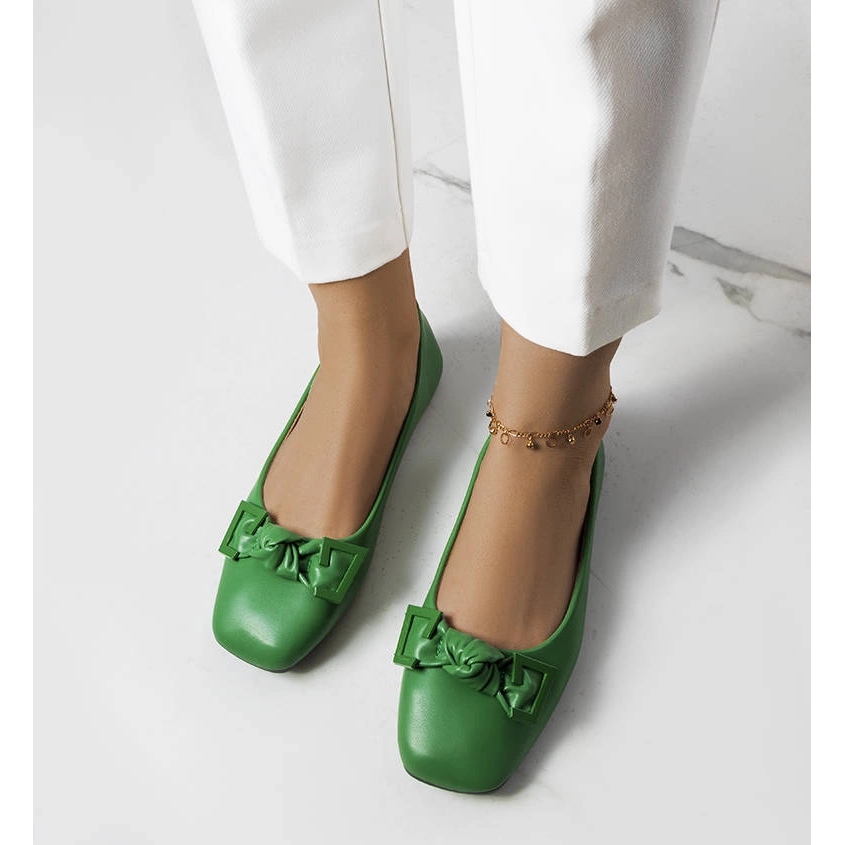 Le design des ballerines se distingue par ses couleurs vertes originales et un élégant nœud décoratif qui attire l'attention et ajoute du charme. La tige basse et le bout carré des chaussures soulignent le style moderne et offrent de l'espace, grâce auquel les doigts ont une liberté de mouvement suffisante.