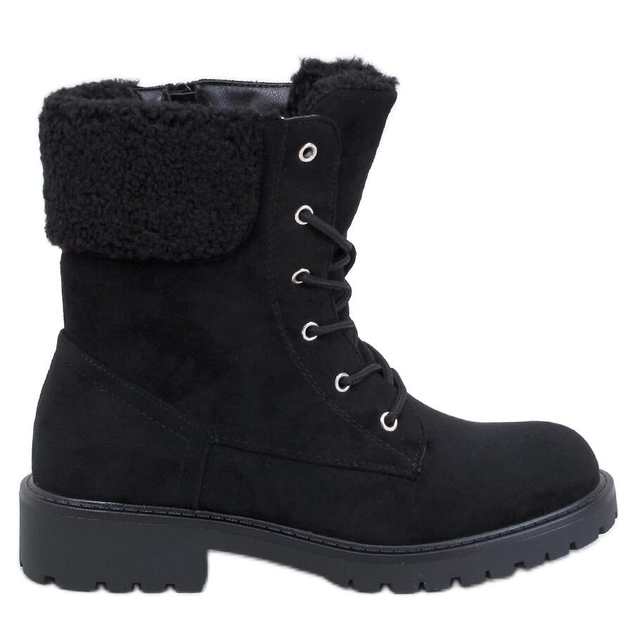 Barkoi Bottines à lacets noires avec peau de mouton