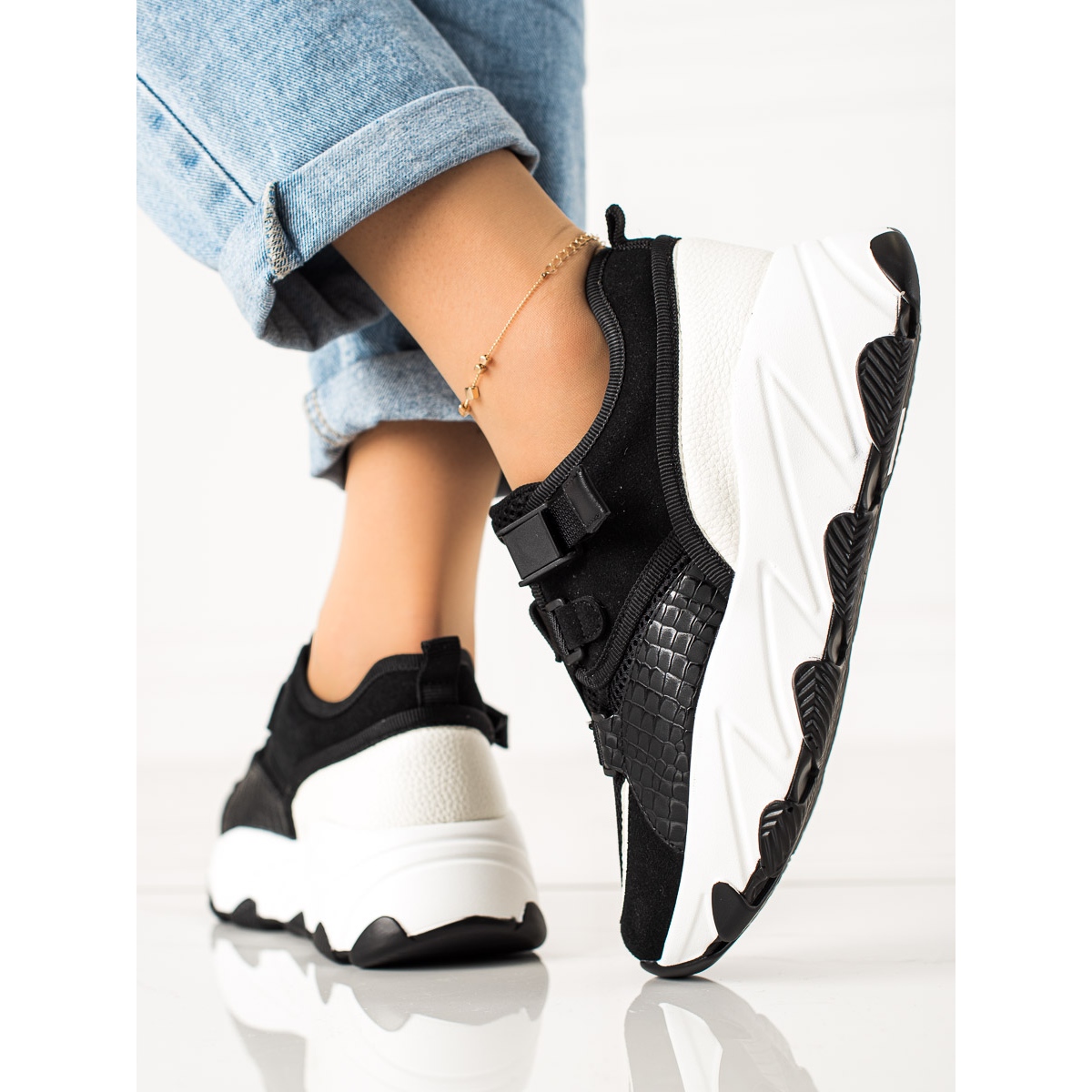 Les baskets Potocki avec boucle noires sont un choix parfait pour les femmes qui apprécient le confort, le style et le design moderne. Fabriquées à partir d'une combinaison de simili cuir et de matières textiles, ces chaussures offrent un look attrayant tout en restant confortables au quotidien.