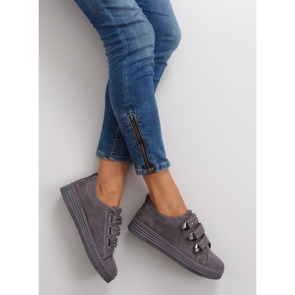Découvrez les baskets uniques pour femmes 16-582 Grey d'Inna Marki - une combinaison parfaite de style et de confort qui s'adaptera bien à n'importe quel style de tous les jours. Fabriquées en daim écologique de haute qualité, ces baskets grises séduisent par leur élégance minimaliste et leur accent original sous forme de petits clous.