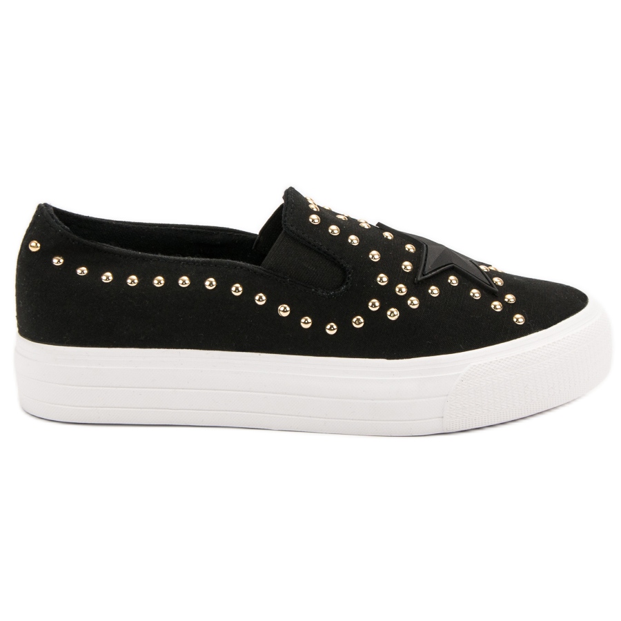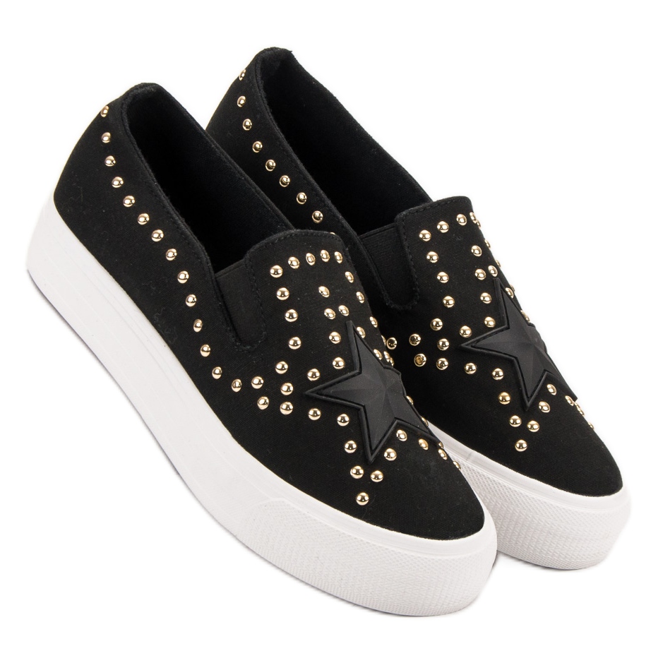 Leur design minimaliste et noir orné de spectaculaires strass en forme d'étoiles leur confère un caractère rock, grâce auquel ils attireront facilement l'attention de leur entourage. Les baskets se caractérisent par une faible hauteur et un talon souple, qui assurent stabilité et confort de port tout au long de la journée.