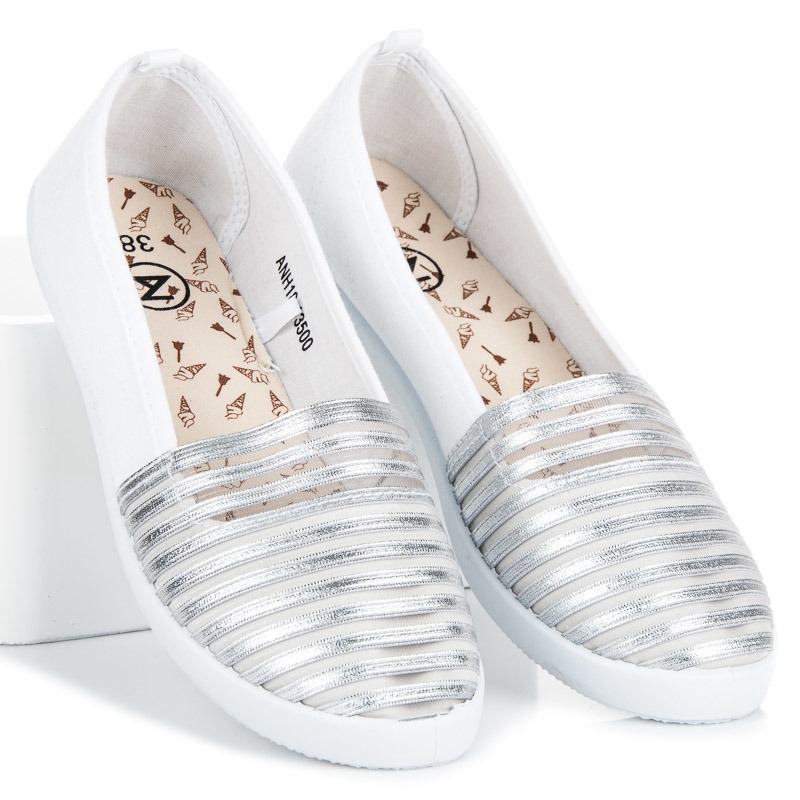 Les baskets Slip On Mckeylor blanches et argentées sont le choix parfait pour toute femme active qui souhaite allier confort et style à la mode. Ces chaussures originales, conçues pour le printemps et l'été, sont parfaites pour un style quotidien. Leur structure de pointe unique avec une maille argentée transparente ajoute légèreté et originalité, et leurs couleurs vives les rendent parfaites pour les journées ensoleillées.