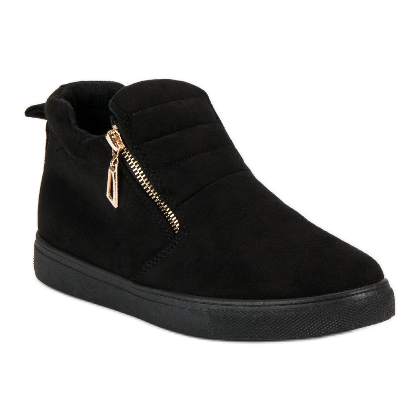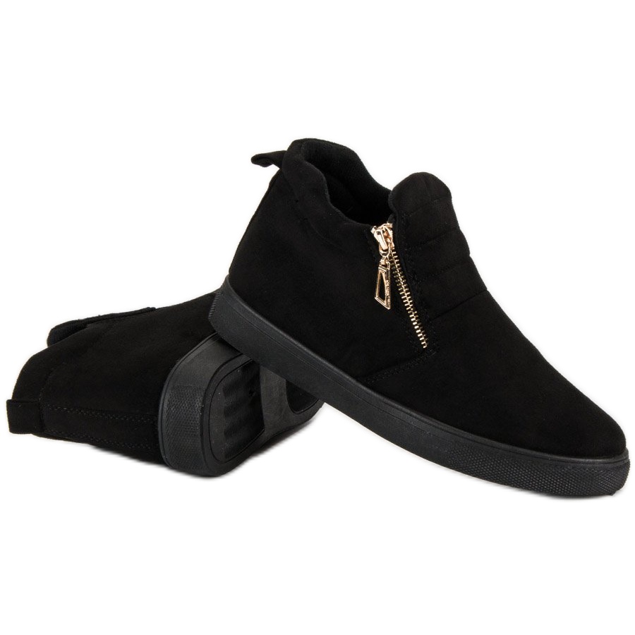 L'un des plus grands avantages de ces baskets est l'absence de lacets. À la place, une fermeture éclair pratique est utilisée, ce qui rend leur enfilage et leur retrait extrêmement simples et pratiques. Les baskets en daim noir arrivent jusqu'aux chevilles, ce qui les rend parfaites pour les journées d'automne, créant une combinaison parfaite avec des pantalons slim, des leggings ou des robes.