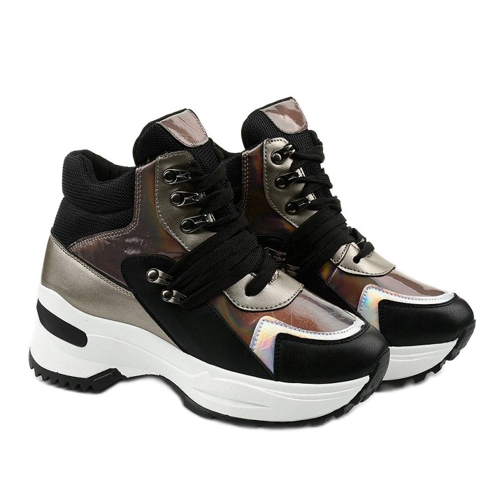 Nous vous présentons des baskets à enfiler Gianna noires uniques, qui allient confort et design moderne. Ces chaussures de sport pour femmes dotées d'une plateforme blanche de 5 centimètres attireront certainement l'attention des amateurs d'accessoires originaux. La tige en cuir écologique de couleur noire classique s'intègre parfaitement dans les dernières tendances.