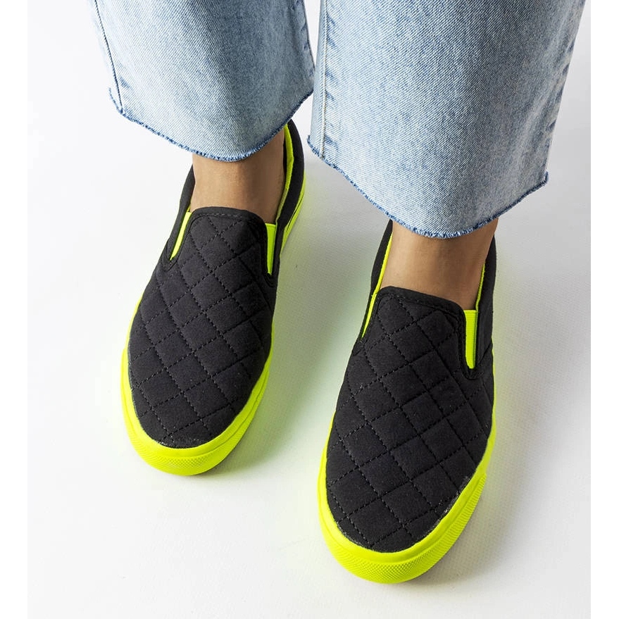 Slip moderne et léger - Le balsamo est une proposition pour les femmes qui apprécient le confort et l'apparence à la mode. Une tige matelassée dans une couleur noire classique avec un accent vert sur la semelle donne aux chaussures un personnage original, et un glissement confortable et un nez rond font que le modèle fonctionne, surtout en été et dans les stylisations urbaines tous les jours.