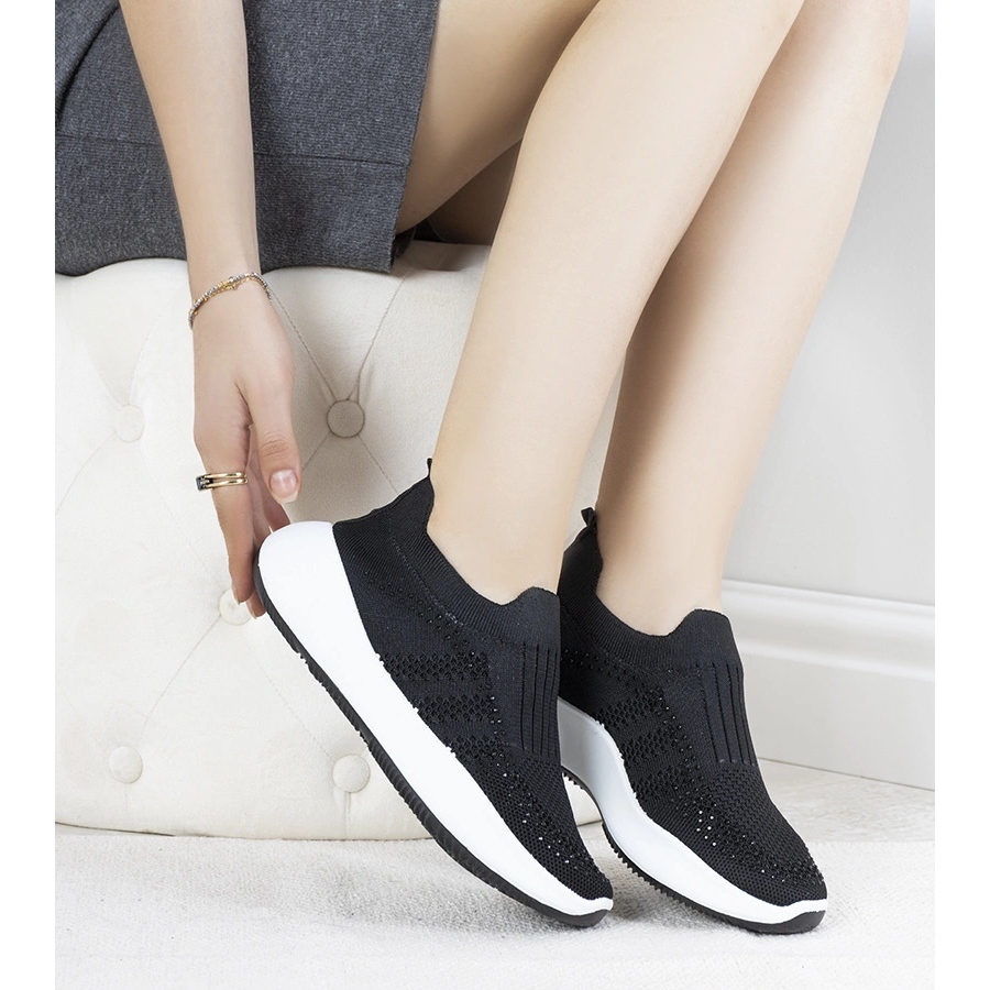 Les baskets noires sont en train de slip-lil-style et de commodité tous les jours. La structure insérée avec un supérieur flexible s'adapte parfaitement au pied, assurant le confort sans reliure. Le modèle doucement décoré d'éléments chatoyants (paillettes / strass) ajoutera un accent cassé de chaque style d'été.