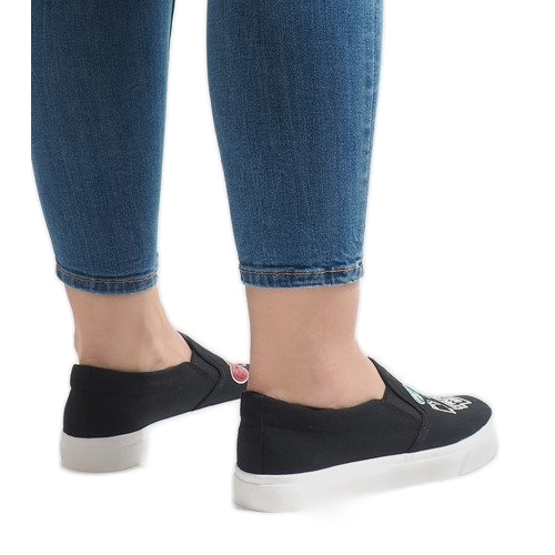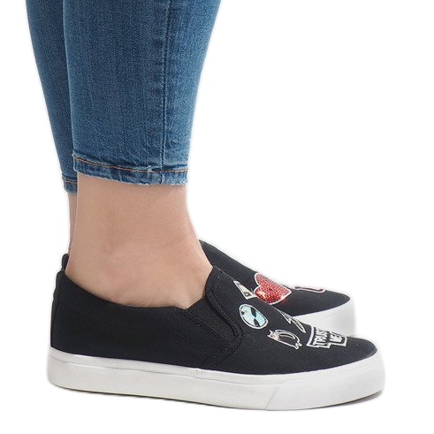 Les baskets se distinguent par leur élégante couleur noire, ce qui les rend universelles et s'intègre facilement dans différents styles. Grâce aux tampons décoratifs et aux applications colorées, ils acquièrent un caractère tendance, parfait pour les promenades en ville ou les réunions informelles entre amis.