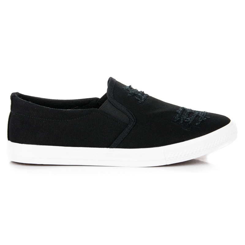 Fabriquées en tissu, les baskets sont non seulement légères, mais aussi aérées, ce qui les rend parfaites pour les journées plus chaudes. Les chaussures basses noires à bout rond sont un choix universel qui peut être facilement combiné avec différents styles - des jeans aux jupes en passant par les shorts.