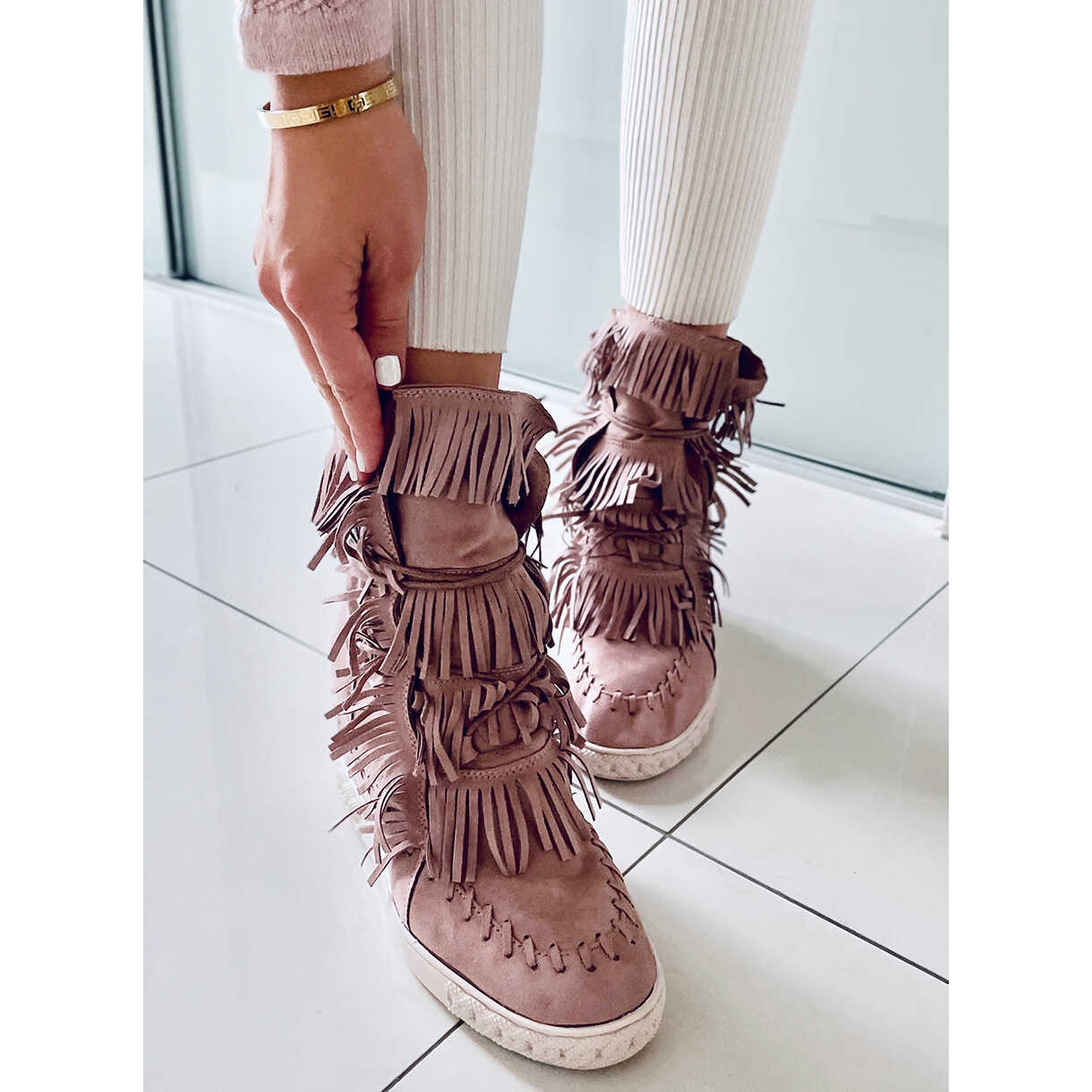 Baskets femme en daim à franges. Fabriqué en daim écologique doux. Ils ont une semelle avec des œillets de chaîne en relief. Devant à lacets. Ils sont très confortables, ils sont beaux sur la jambe!
