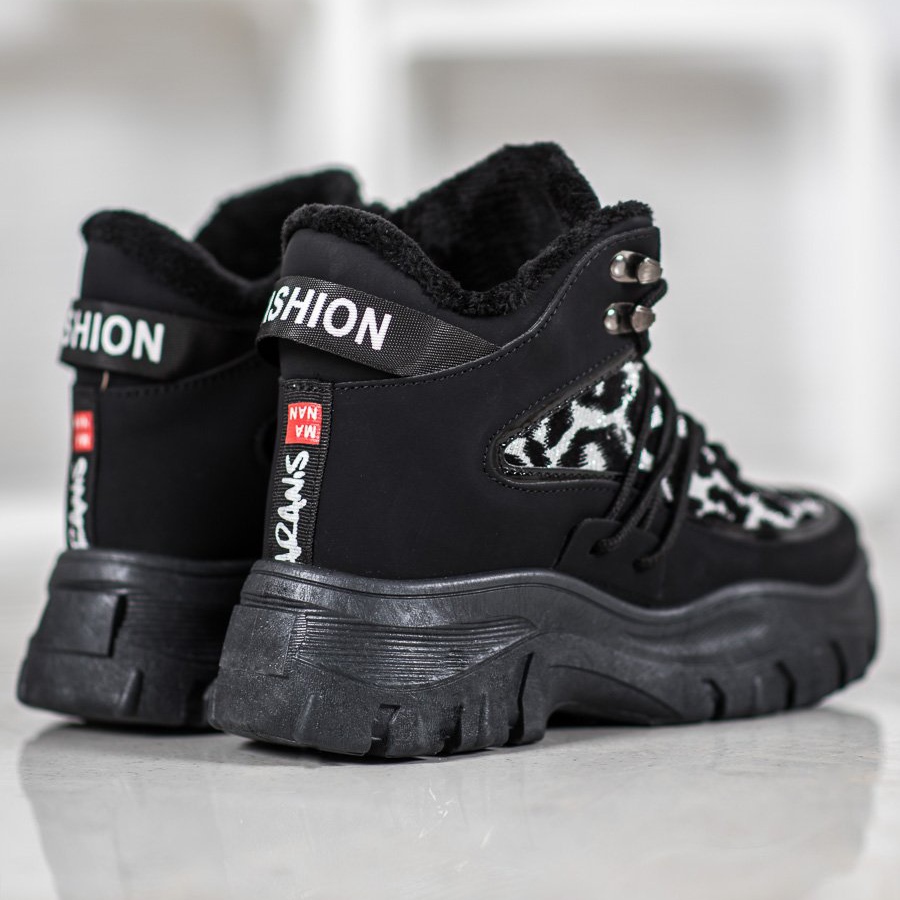 Choisissez les baskets noires SHELOVET Leopard Print et ajoutez un peu de style féroce à votre garde-robe qui vous gardera au chaud et à la mode tout au long de la saison d'automne et d'hiver !