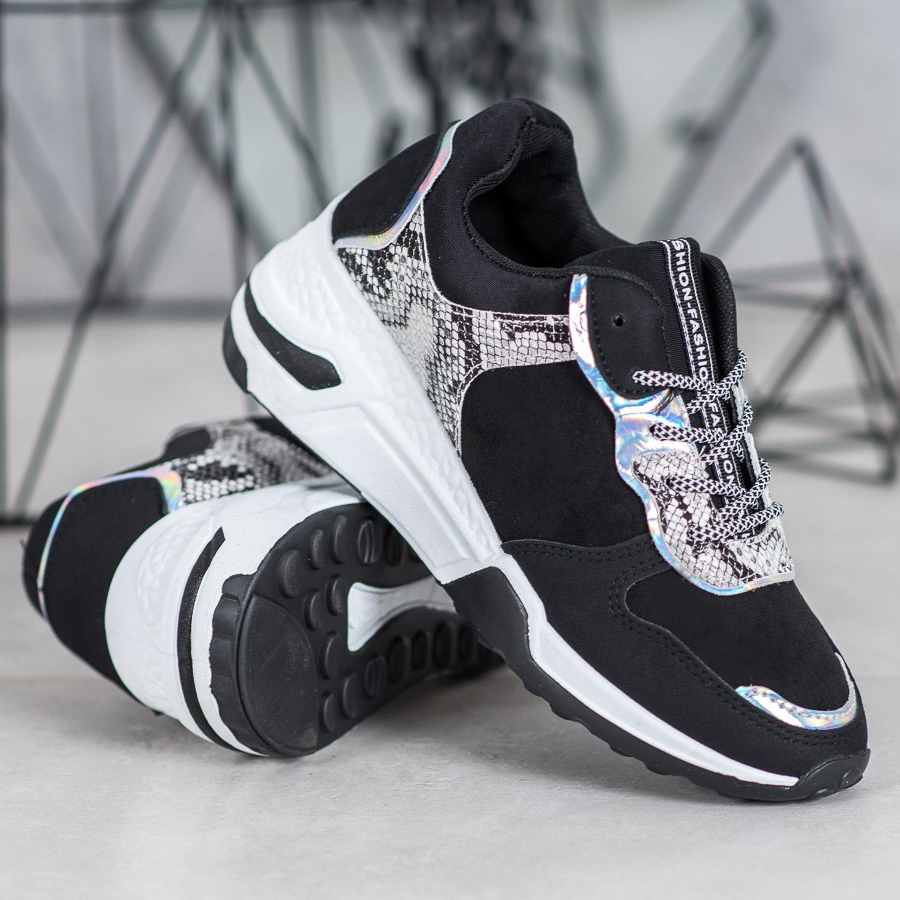 Les baskets SHELOVET Snake Print en noir sont une option idéale pour les femmes qui souhaitent allier confort et look à la mode. Ces chaussures de sport uniques correspondent parfaitement aux tendances actuelles, attirant l'attention avec un motif animal accrocheur qui imite la peau de serpent.