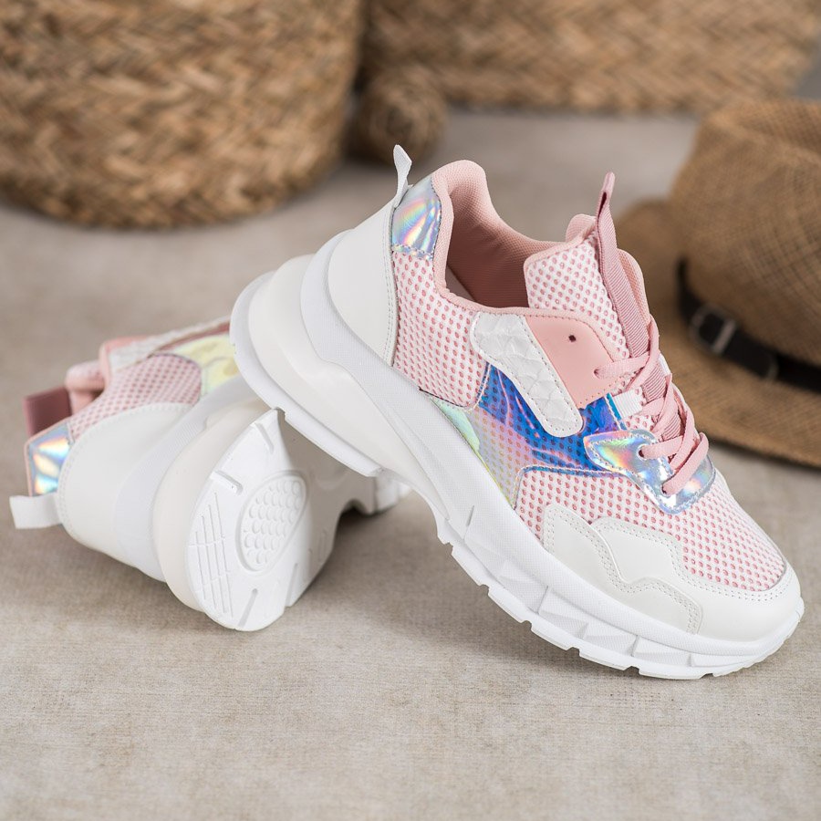 Nous vous présentons de magnifiques baskets pour femmes de la marque Mannika, qui séduisent par une combinaison de maille blanche et d'accents roses et holographiques. Ces chaussures uniques sont le choix parfait pour les femmes qui apprécient l'apparence à la mode et le confort. Leur style sportif s'harmonise parfaitement avec le style de tous les jours, leur ajoutant un caractère unique.