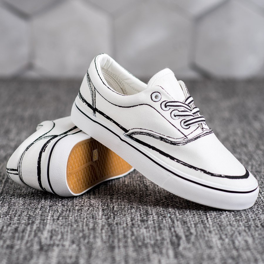 Les baskets ont une fermeture à lacets traditionnelle, qui permet un ajustement parfait au pied. Le nez rond et le talon souple intégré offrent un confort de port supplémentaire, quelle que soit la saison. L'imprimé noir sur la tige, imitant les coutures, ajoute un peu de caractère à la forme minimaliste, ce qui les rend non seulement fonctionnels, mais aussi un élément de mode de la garde-robe.