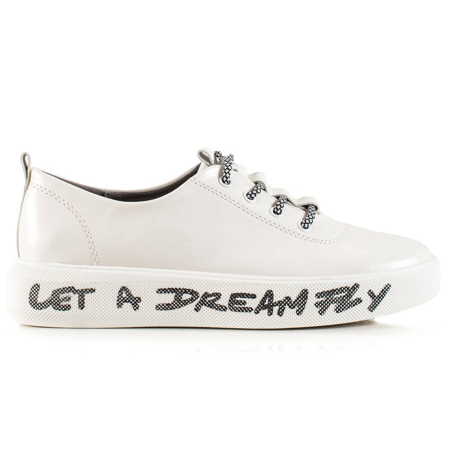 Les baskets se caractérisent par des matériaux de haute qualité - la tige est en cuir écologique, tandis que l'intérieur est recouvert de cuir naturel, ce qui garantit un confort de port et une circulation d'air adéquate. Le bout rond ajoute légèreté et charme. La semelle de 3,5 cm de hauteur, en matière synthétique, possède une bande de roulement qui offre une excellente adhérence, qui vous permet de vous déplacer en toute sécurité dans diverses conditions.