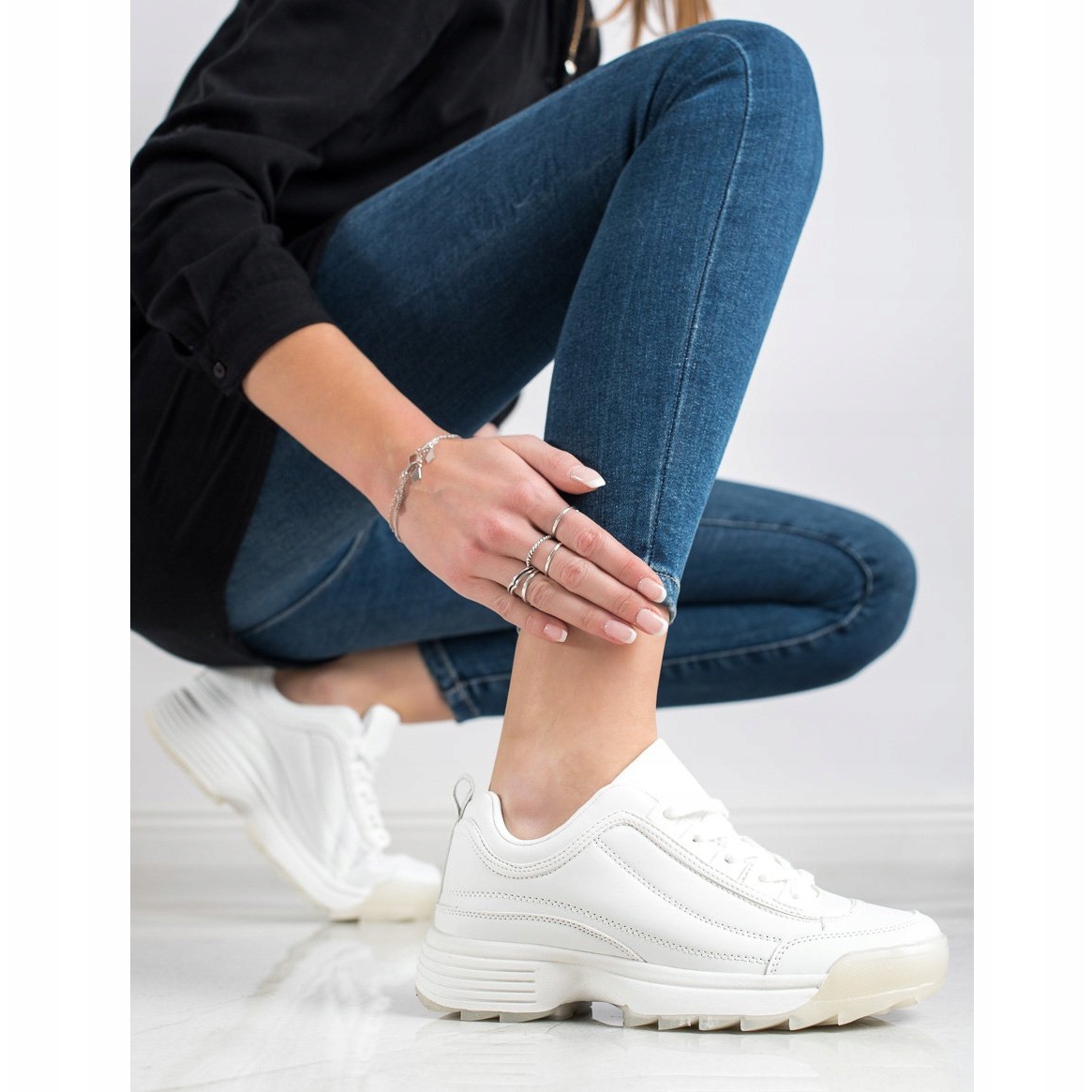 Ces baskets blanches signées Kylie se distinguent par un bout rond qui leur confère un caractère classique, et la fermeture à lacets permet un ajustement parfait au pied. Grâce à leur faible hauteur (profondeur du talon 5 cm avec plateforme 3,5 cm), elles sont parfaites pour un usage quotidien, aussi bien en automne-hiver qu'en printemps-été.