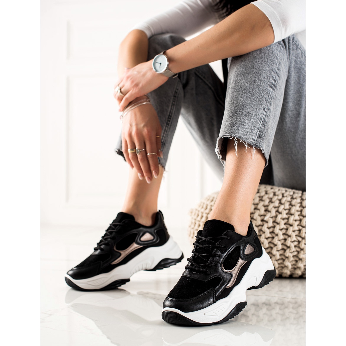 Les baskets Marquiz sont un choix idéal pour les femmes qui apprécient le confort et un look tendance. Ces chaussures de sport noires se distinguent par leur design moderne et l'utilisation de matériaux de qualité supérieure. Fabriquées à 50 % en simili cuir et à 50 % en simili daim, les baskets allient style et fonctionnalité, ce qui en fait un excellent choix à porter au quotidien.