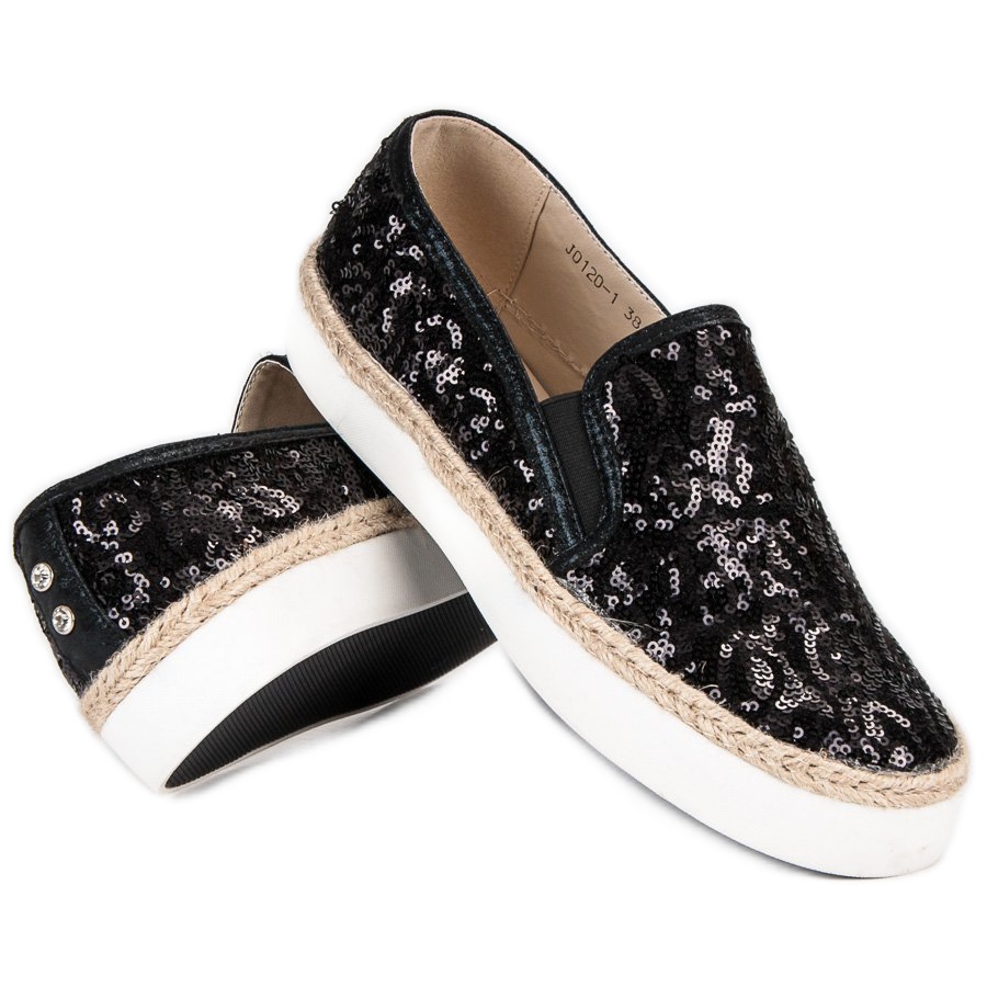 Nous vous présentons les baskets J. Star pour femmes à la mode dans une élégante couleur noire, qui allient parfaitement confort sportif et féminité sensuelle. Ces chaussures uniques, décorées de paillettes brillantes et de strass, attirent l'attention et ajoutent du caractère à n'importe quel style.