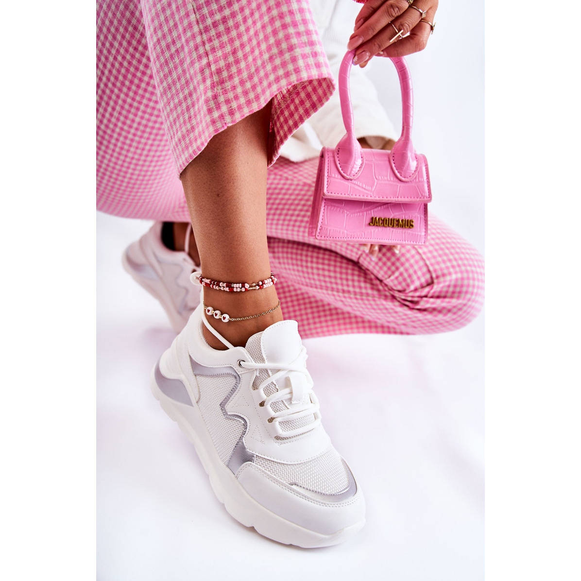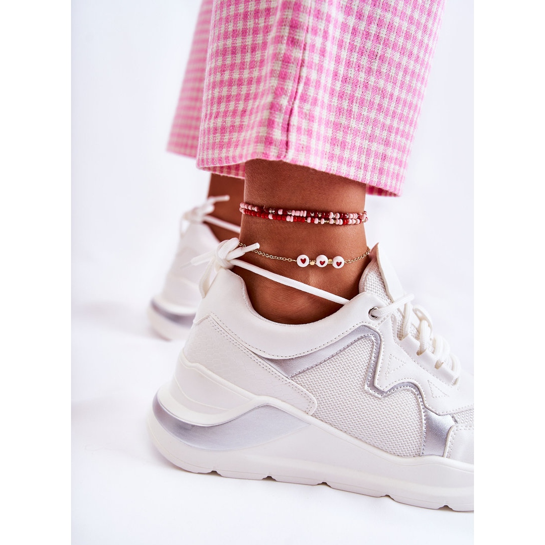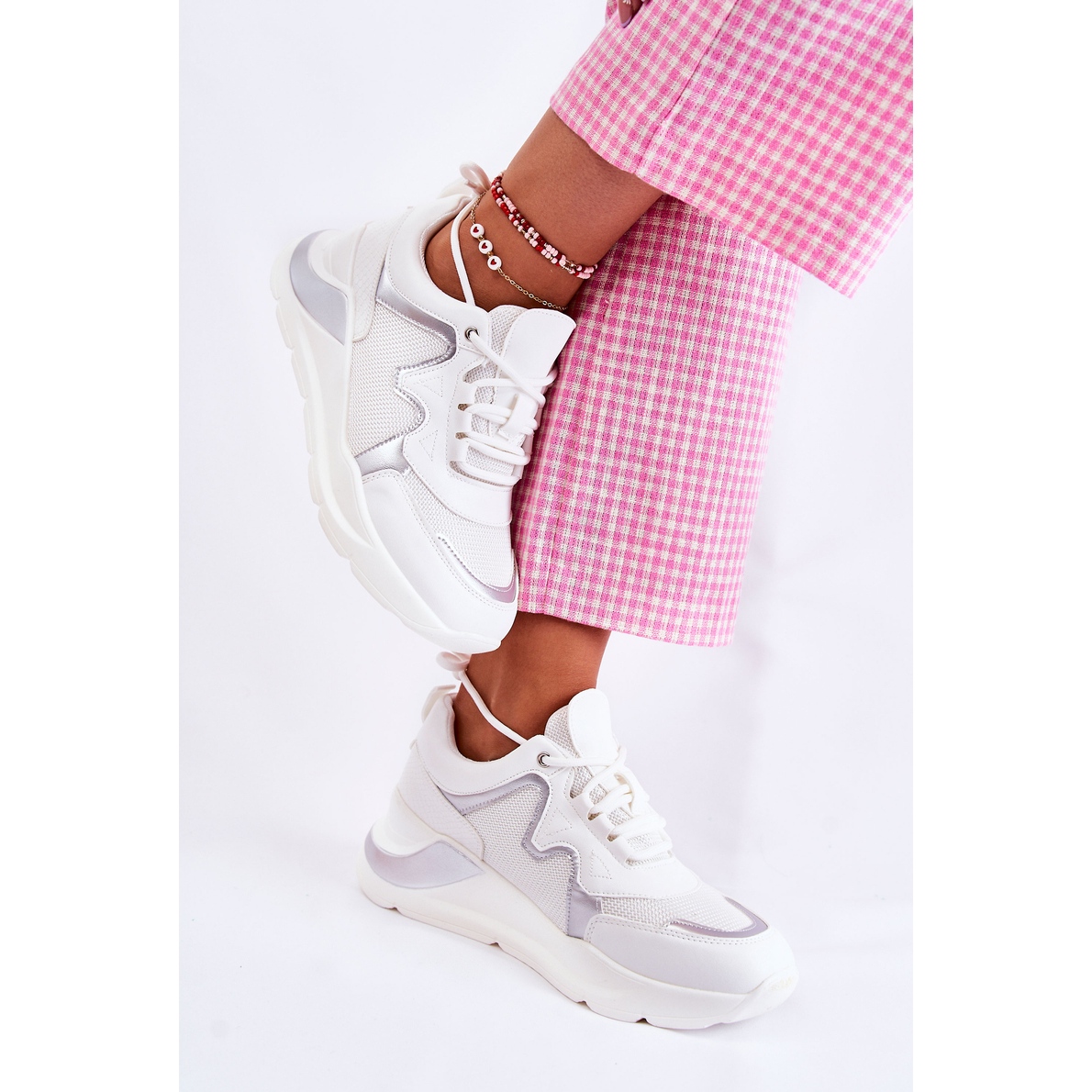 Des baskets féminines élégantes et confortables en combinaison blanche-A de matériau respirant avec écos-cuir, intégrée sur une plate-forme à la mode et des coins. Idéal pour les stylisations quotidiennes, sportives et décontractées.