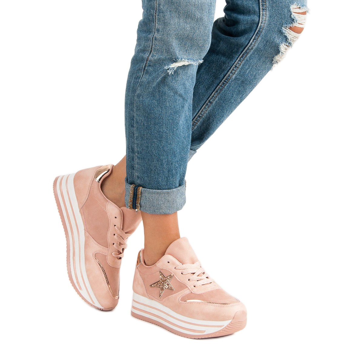 Détails: Baskets à la mode sur la plate-forme rose