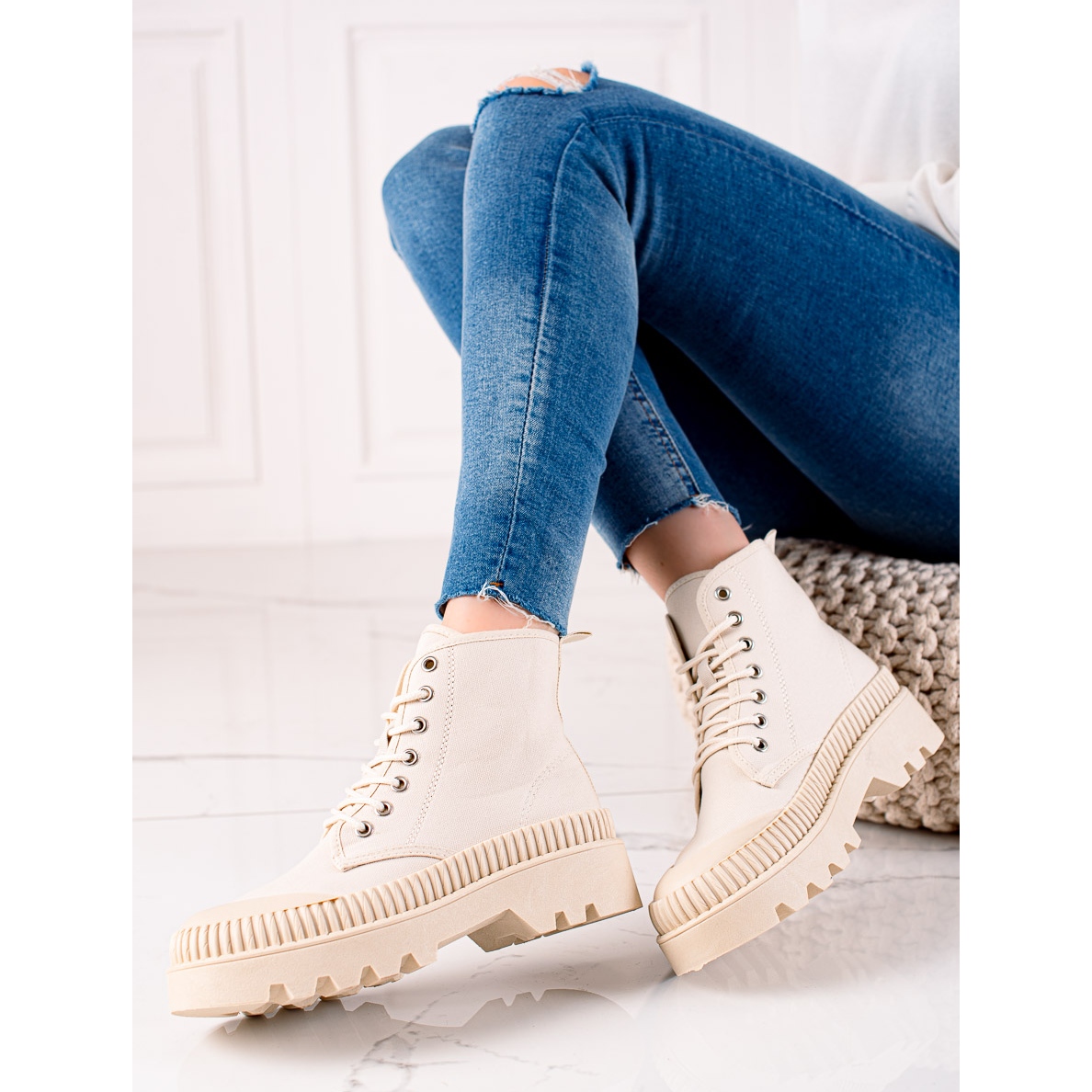 Nous vous présentons des baskets à plateforme à la mode du fabricant Melisa dans une couleur beige unique. C'est un excellent choix pour les femmes qui apprécient le confort et le style au quotidien. Ces baskets sportives et décontractées sont parfaites pour toutes les occasions : au printemps et en été, ainsi qu'en automne et en hiver.