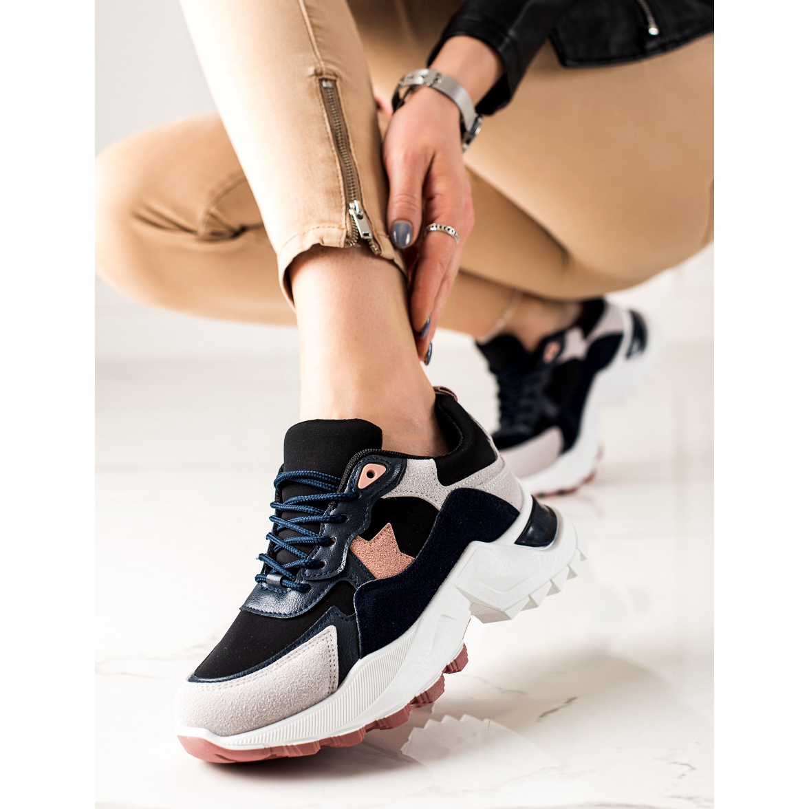 Nous vous présentons des baskets à la mode du fabricant Sweet Shoes, parfaites pour les femmes qui apprécient le confort et le style. Ce modèle est disponible en trois couleurs tendance : beige, noir et rose, ce qui permet de l'assortir facilement à n'importe quel style décontracté.