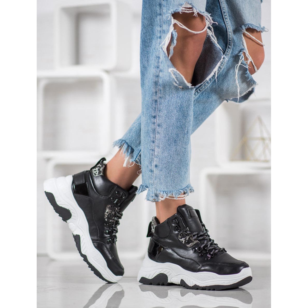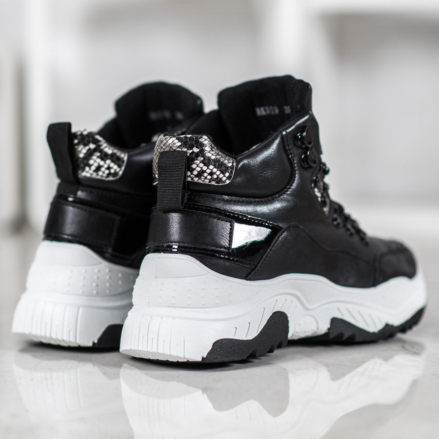 L'association du style sportif et d'un peu d'élégance est une combinaison parfaite que vous retrouverez dans les baskets à lacets noires Fashion de Bella Paris. Ces chaussures pour femmes uniques se caractérisent par une tige surélevée, ornée d'empiècements à motif peau de serpent, qui leur confère un caractère unique.