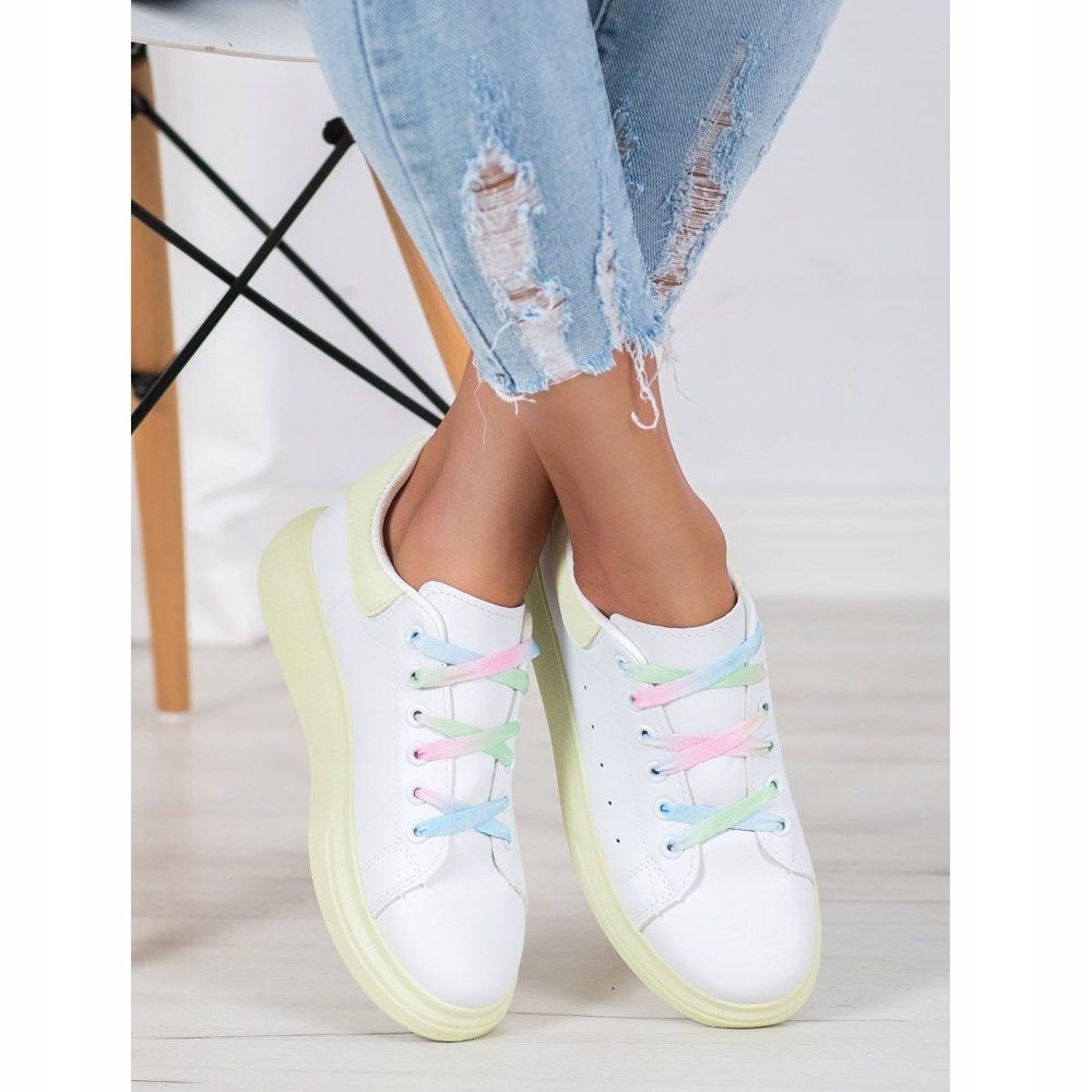 Les baskets SHELOVET avec lacets colorés sont la combinaison parfaite de style et de confort pour les femmes modernes. Ces chaussures tendance sont disponibles dans une élégante couleur blanche avec des accents verts qui ajoutent de la fraîcheur et du caractère. La semelle en matière synthétique garantit durabilité et confort de port, et sa hauteur de 4 cm fait de chaque pas un plaisir.