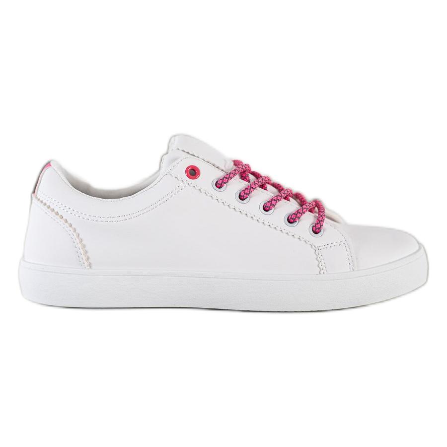 Voici une proposition idéale pour les femmes qui apprécient à la fois le confort et l'apparence à la mode : les baskets SHELOVET avec un lacet blanc décoratif. Ces chaussures de sport décontractées sont fabriquées dans un matériau de haute qualité imitant le cuir, ce qui les rend non seulement élégantes, mais également durables. La tige blanche se marie parfaitement avec les passants de ceinture colorés et les lacets à motifs dans les tons violets, qui créent un accent accrocheur.