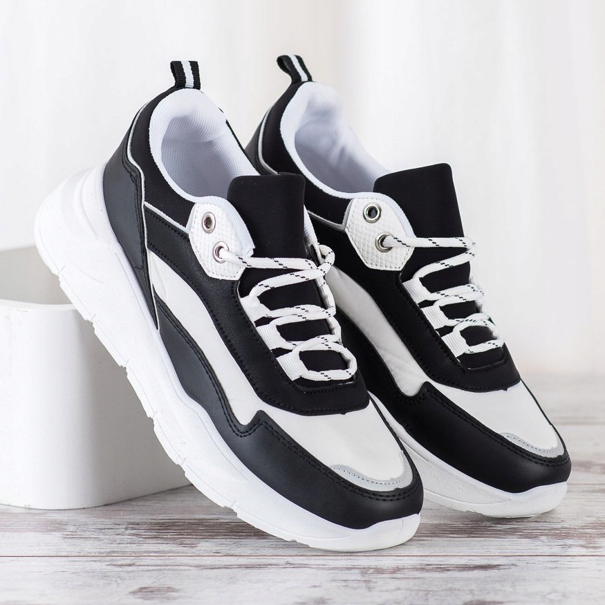 Détails: SHELOVET Baskets à lacets élégantes blanc noir