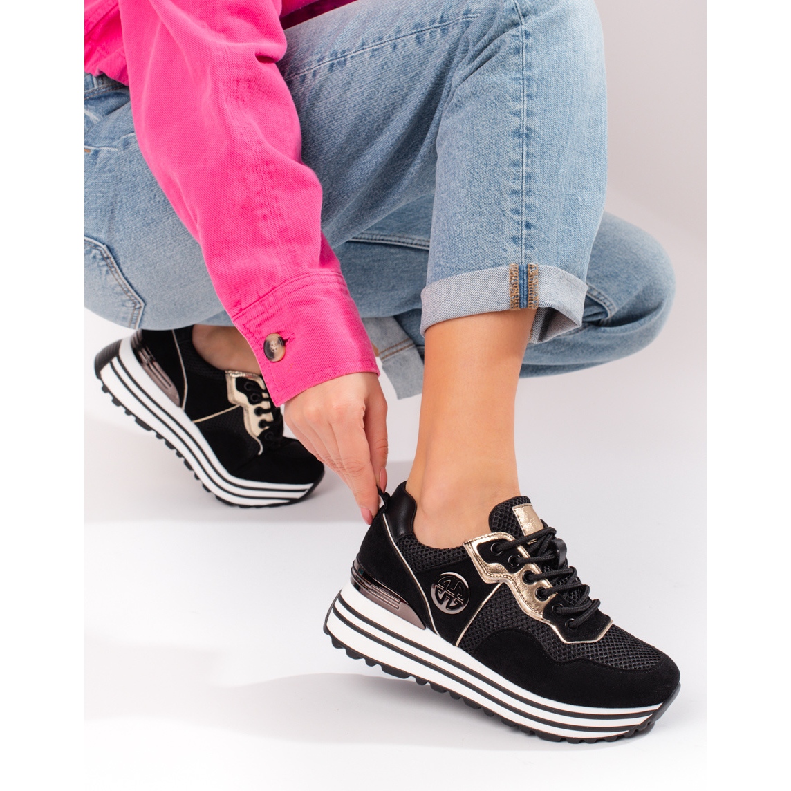Les baskets à lacets pour femmes de W. Potocki en noir sont un choix parfait pour les femmes qui apprécient le confort et le style au quotidien. Ils disposent d'un talon intégré et renforcé, qui assure la stabilité lors de l'utilisation. Grâce à la semelle en caoutchouc avec bande de roulement, les baskets offrent une excellente adhérence sur diverses surfaces, ce qui les rend parfaites aussi bien pour les saisons automne/hiver que printemps/été.