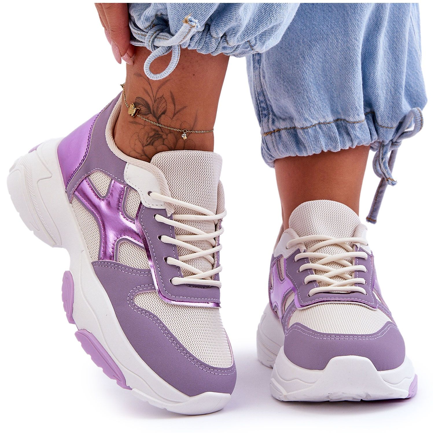 La couleur violette des baskets avec des détails blancs rend ce modèle parfaitement en phase avec les tendances de la mode actuelle, ce qui en fait un excellent choix pour un style quotidien, à la fois décontracté et légèrement plus élégant. Grâce à leur polyvalence, ces chaussures s'adapteront à de nombreuses combinaisons vestimentaires différentes.