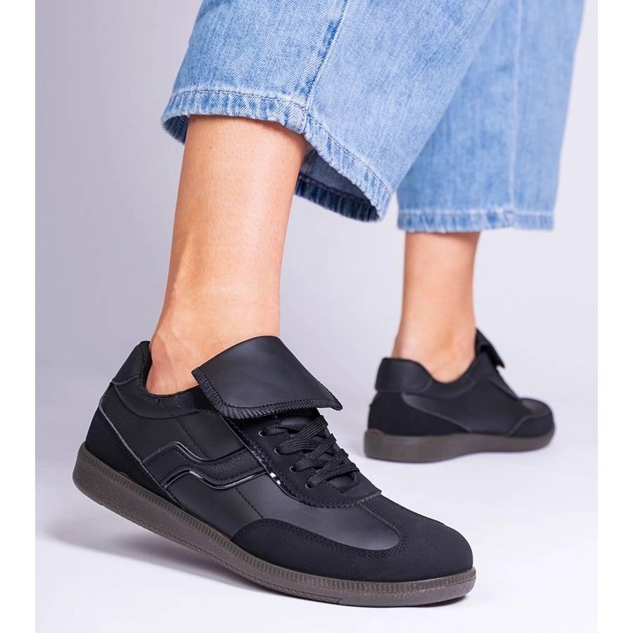 Black Low Sneakers Lace-Up Model A-100 est une proposition idéale pour chaque femme active qui recherche une combinaison de style et de confort. Fabriquées en cuir écologique de haute qualité, ces baskets sont respectueuses de l'environnement et leur esthétique attire l'attention.