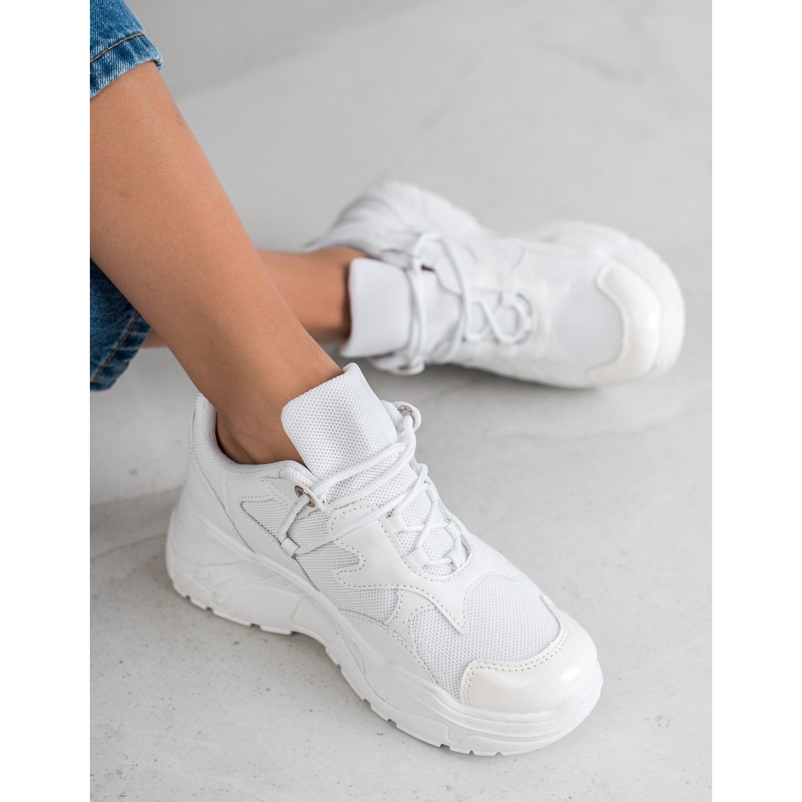 La semelle des baskets, haute de 5 cm, en matière synthétique, garantit non seulement une bonne adhérence grâce à la bande de roulement, mais assure également une isolation efficace du sol. Grâce à leur style décontracté et sportif, les baskets blanches de Small Swan s'adaptent parfaitement à une variété de styles, des jeans aux leggings de sport.