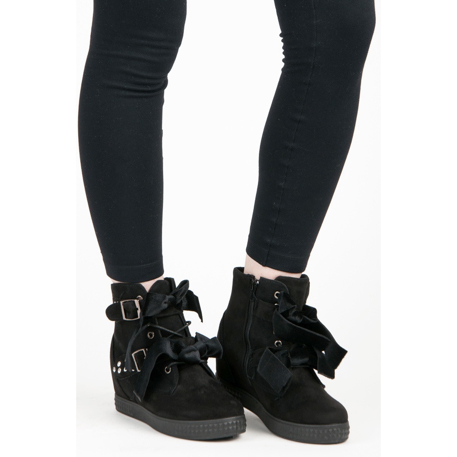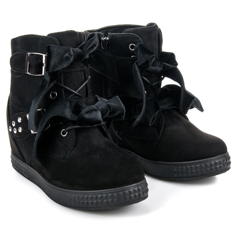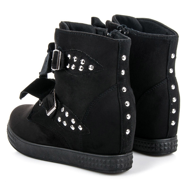 Découvrez l'élégance et le confort à la fois grâce aux baskets noires à nœuds d'Inna Marka. Ces baskets montantes attireront certainement l'attention grâce à leur design unique et leurs détails attrayants tels que les clous. Fabriqués en cuir suédé écologique de haute qualité, ils offrent non seulement du style mais aussi du confort de port.