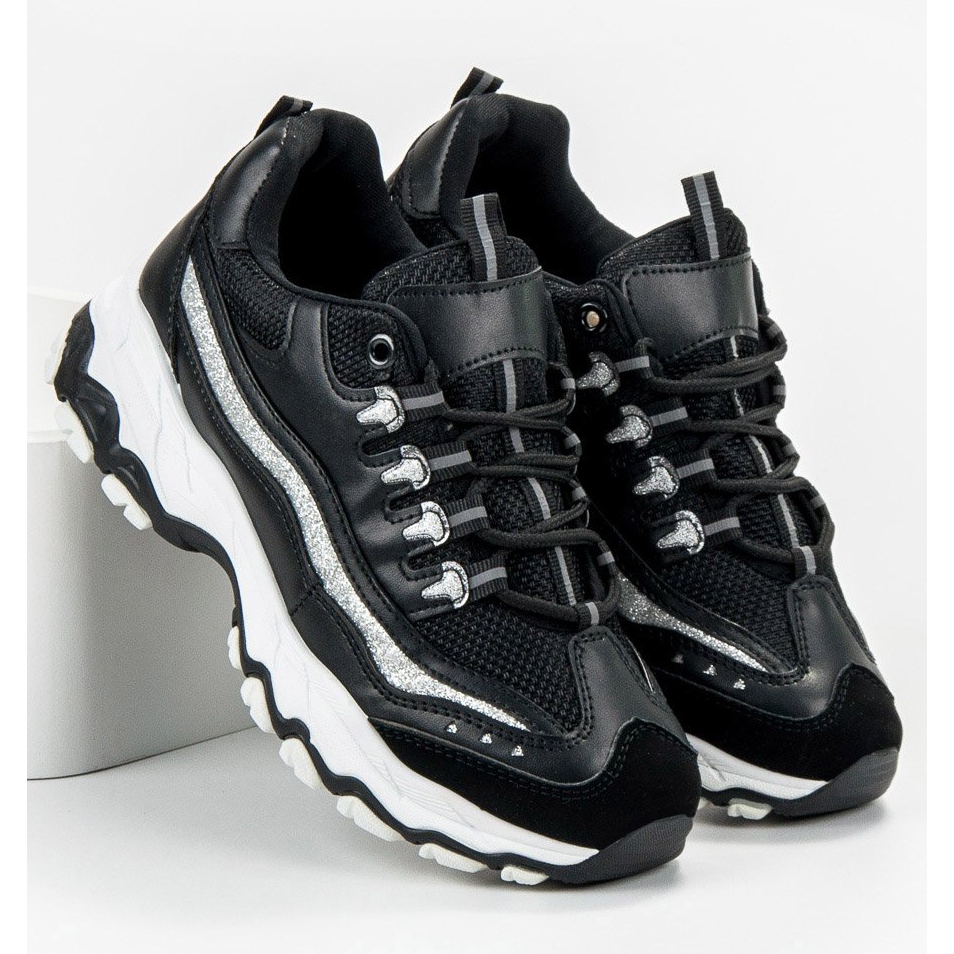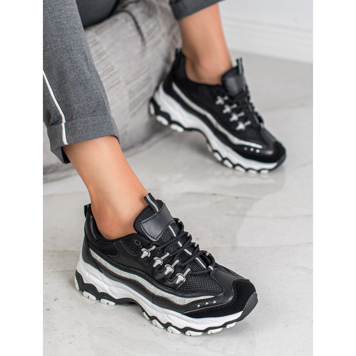 Les matériaux noirs à partir desquels ces chaussures sont fabriquées sont décorés de subtiles paillettes, ce qui leur confère un caractère unique et les rend particulièrement appréciées des jeunes. Le design classique avec un bout arrondi et un talon doux intégré assure une stabilité adéquate et un style frais.