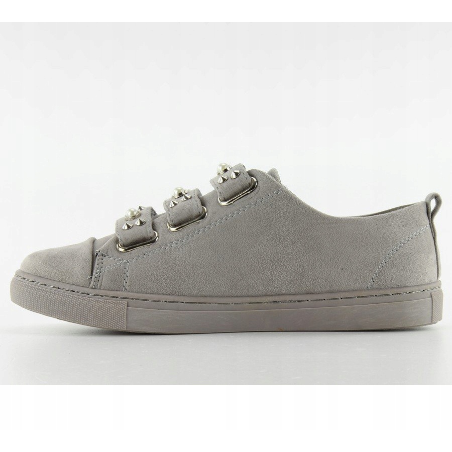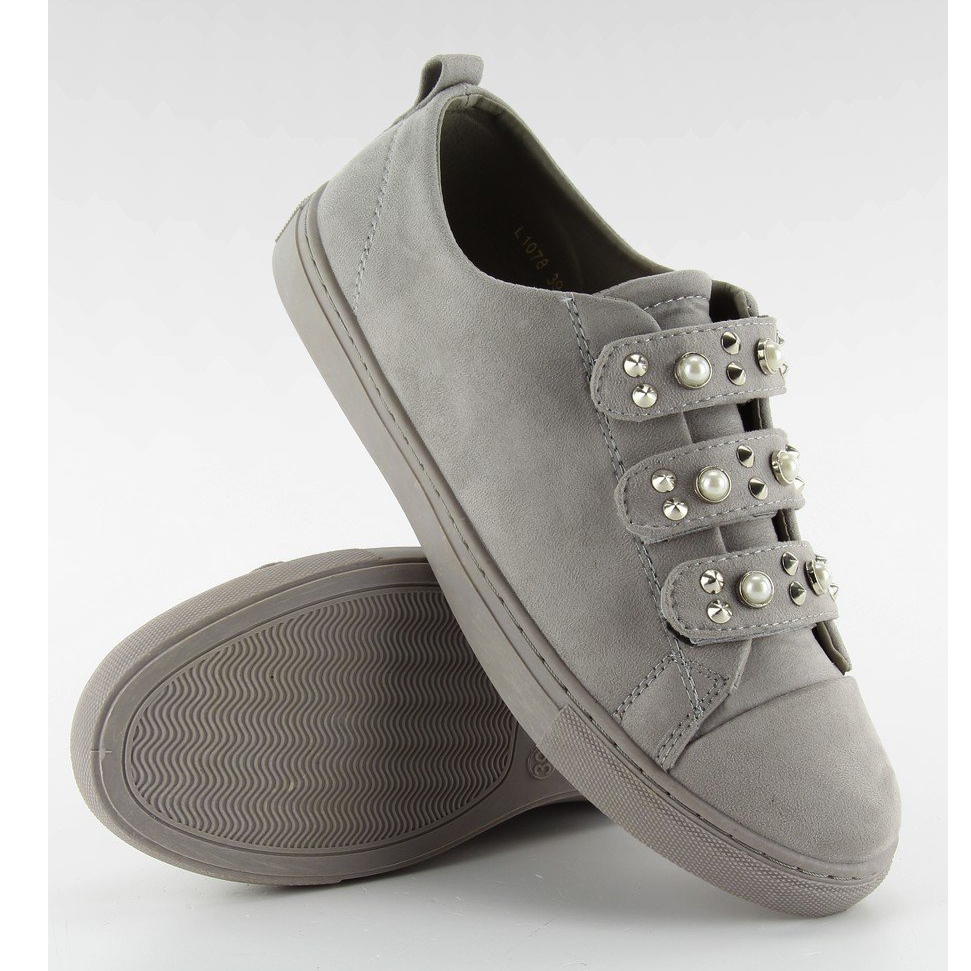 Les baskets élégantes pour femmes L1078 en gris sont un choix parfait pour chaque femme à la mode. Fabriqués en éco-daim épais et de haute qualité, ils allient élégance et confort au quotidien. Ces baskets basses se distinguent non seulement par leur confort de port, mais aussi par une fermeture fermeture scratch originale, ornée de subtiles perles.
